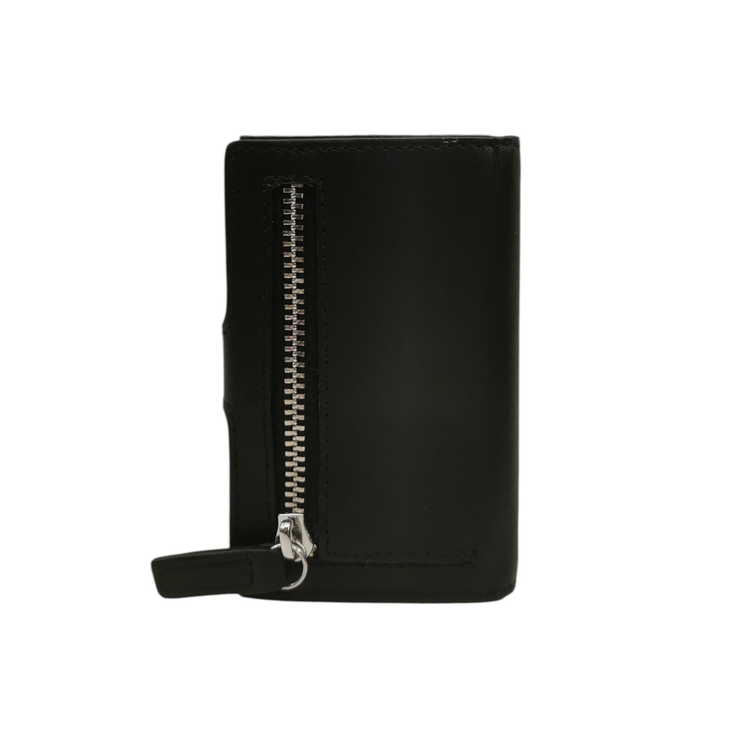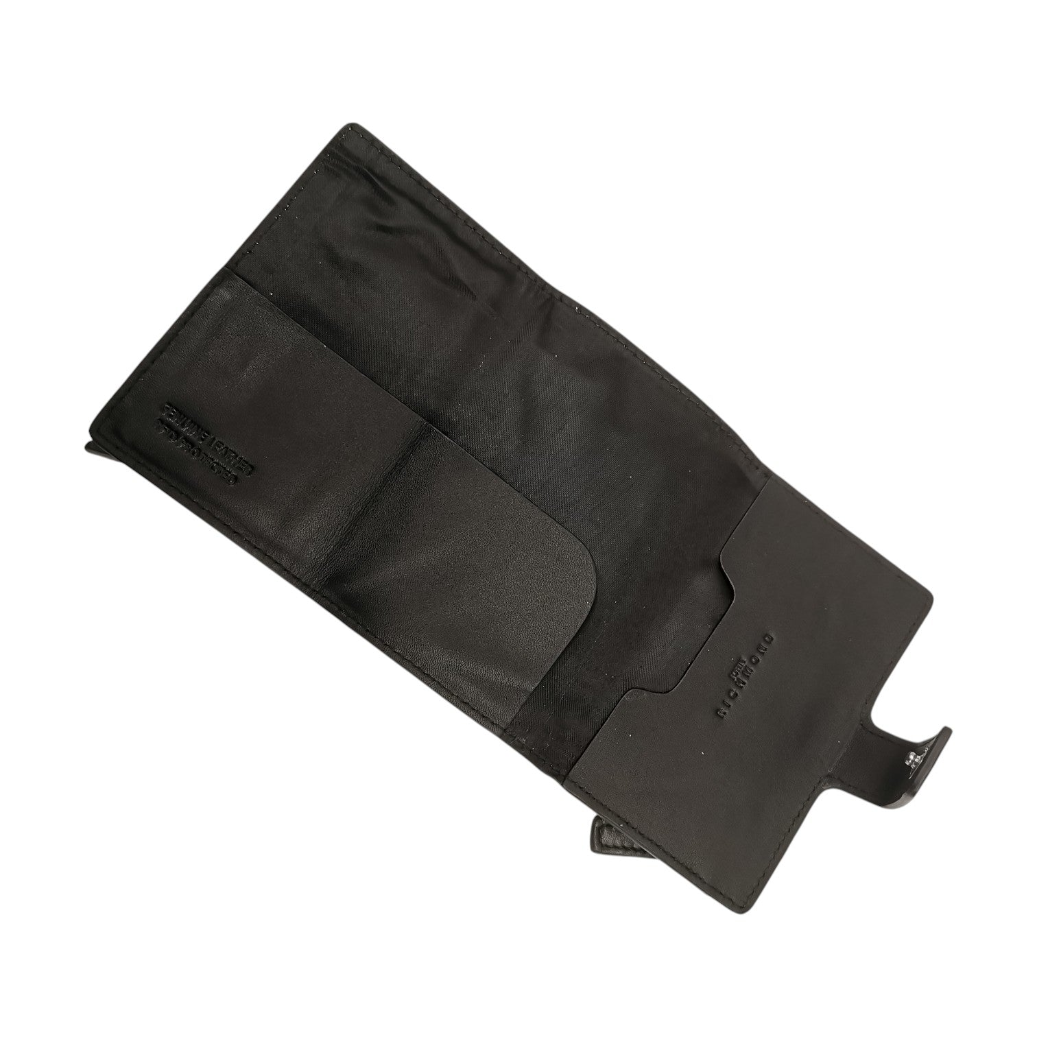 Il Portacarte firmato John Richmond, realizzato in pelle nera si apre con un bottoncino è perfetto per mantenere al sicuro le proprie carte. Sottile e minimale, è dotato di inserti per un rapido accesso alle carte e da una clip: tirandola verso il lato, potrai vedere i tuoi documenti.
