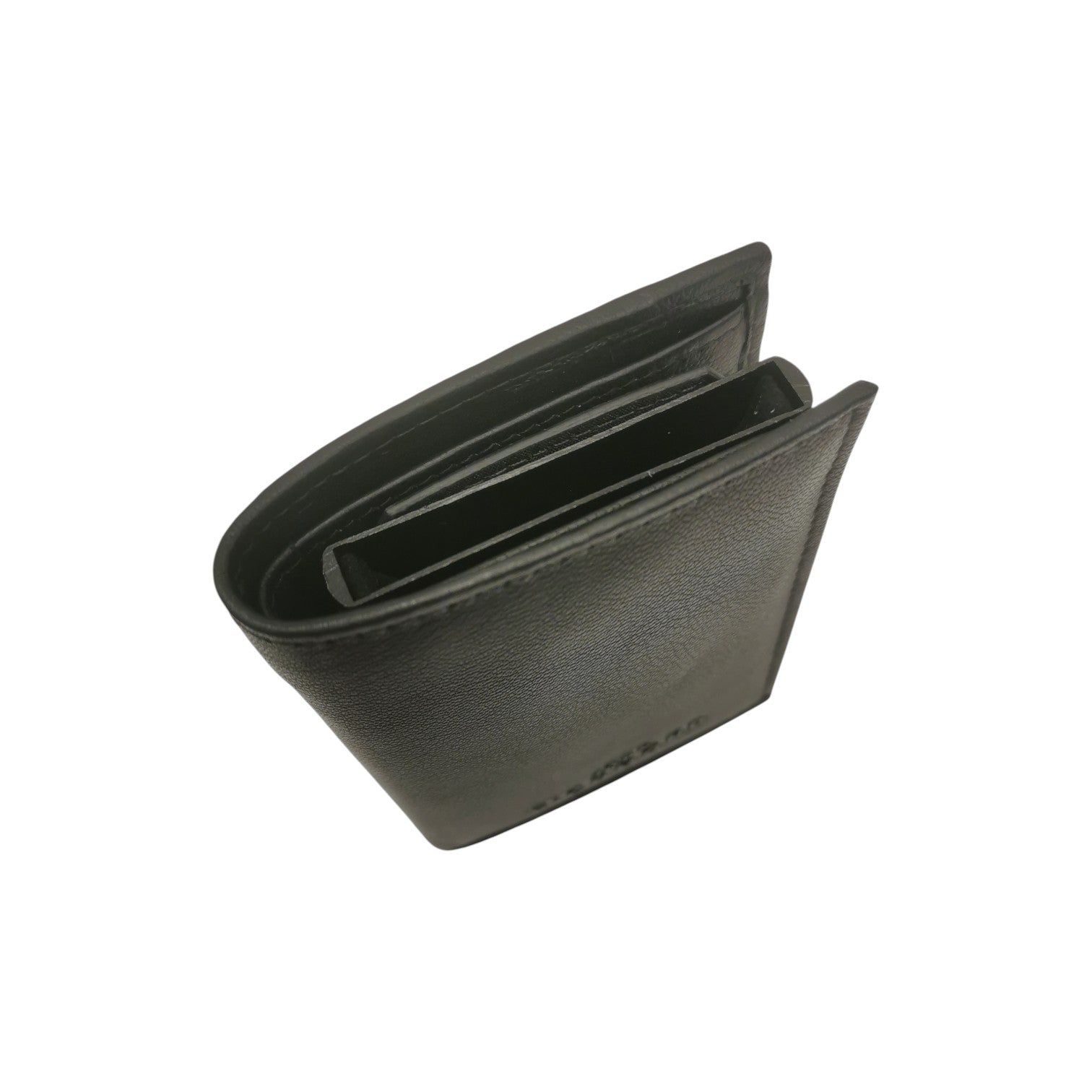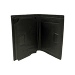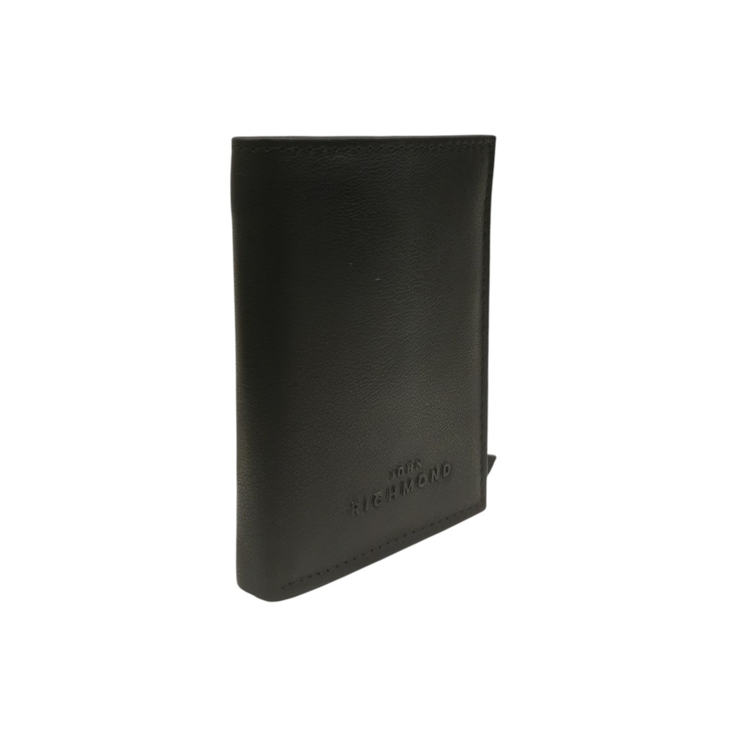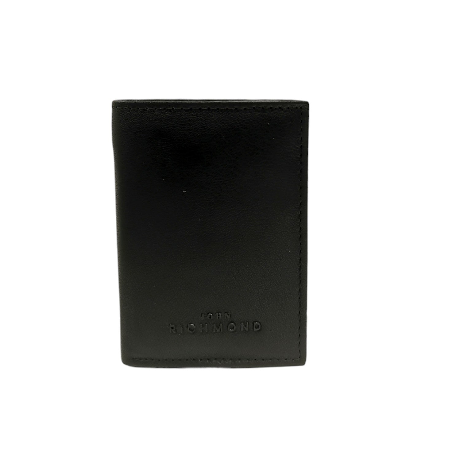 Il Portacarte firmato John Richmond, realizzato in pelle nera effetto saffiano è caratterizzato da logo in rilievo sulla parte frontale, all'interno sono presenti scomparti dedicati per banconote e carte, con taschino per le monete sul retro.