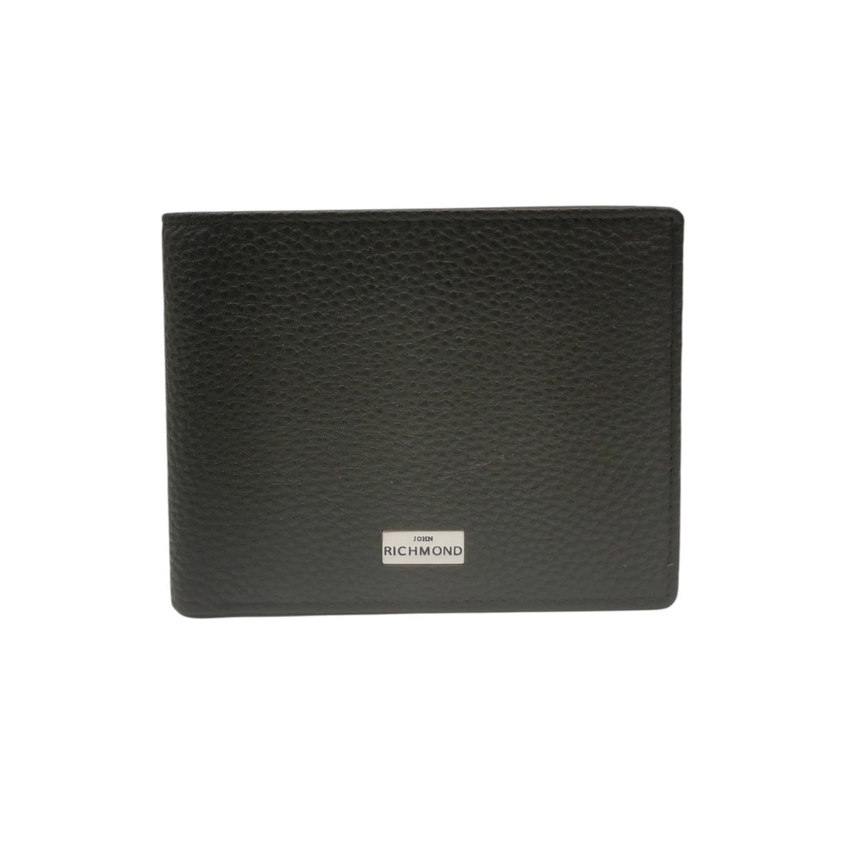 John Richmond Portafoglio Rettangolare Uomo in Pelle Nera Martellata con Targhetta Logo