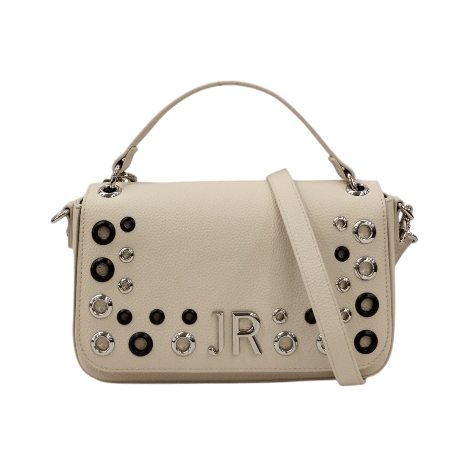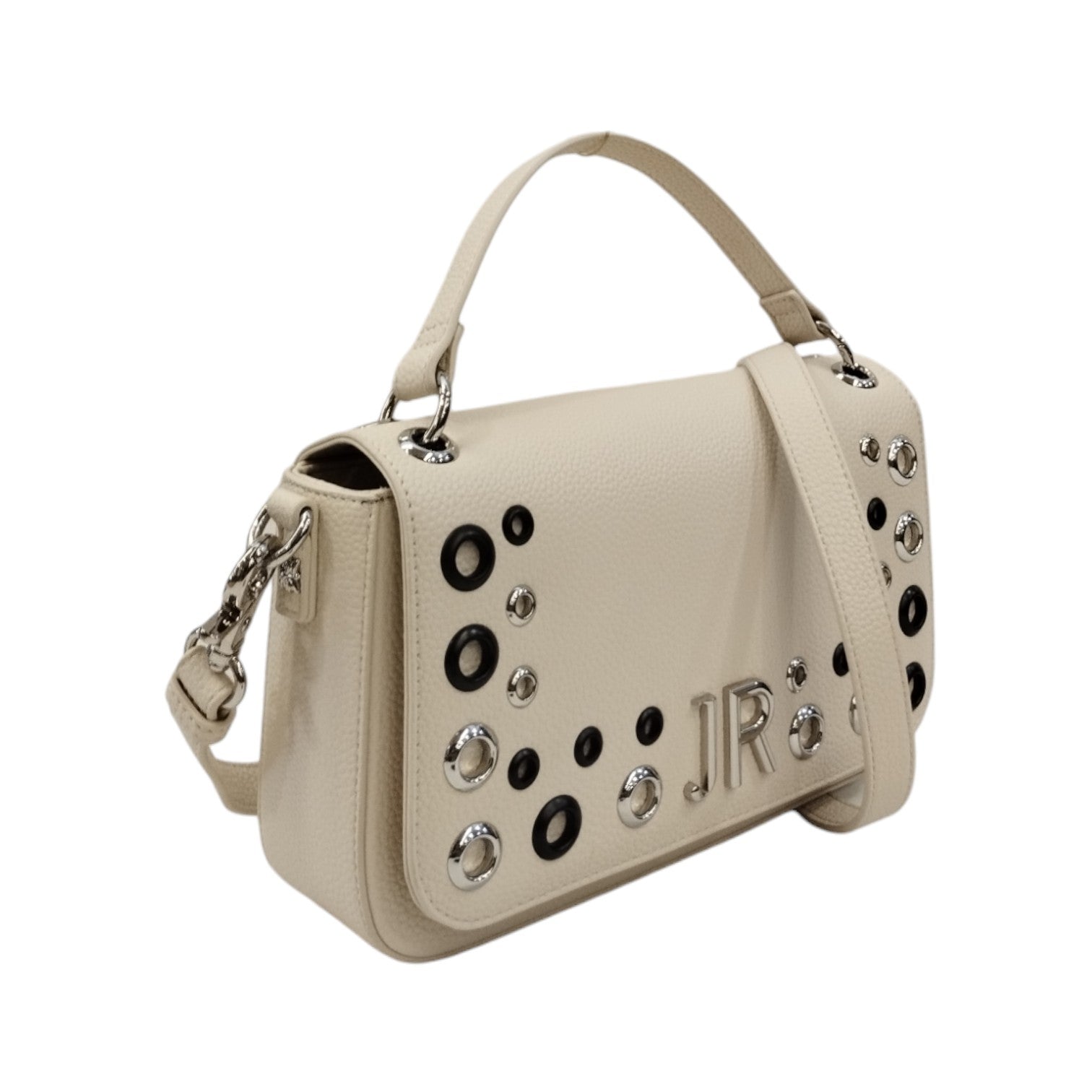 La Borsa a mano firmata John Richmond, realizzata in ecopelle martellata è caratterizzata da borchie frontali e da logo Brand su patta in metallo argentato, presenta una tracolla regolabile e removibile con scomparto principale di cui dispone di tasca con zip e tre per carte di credito. Questo modello è caratterizzato da una forma classica e chic.