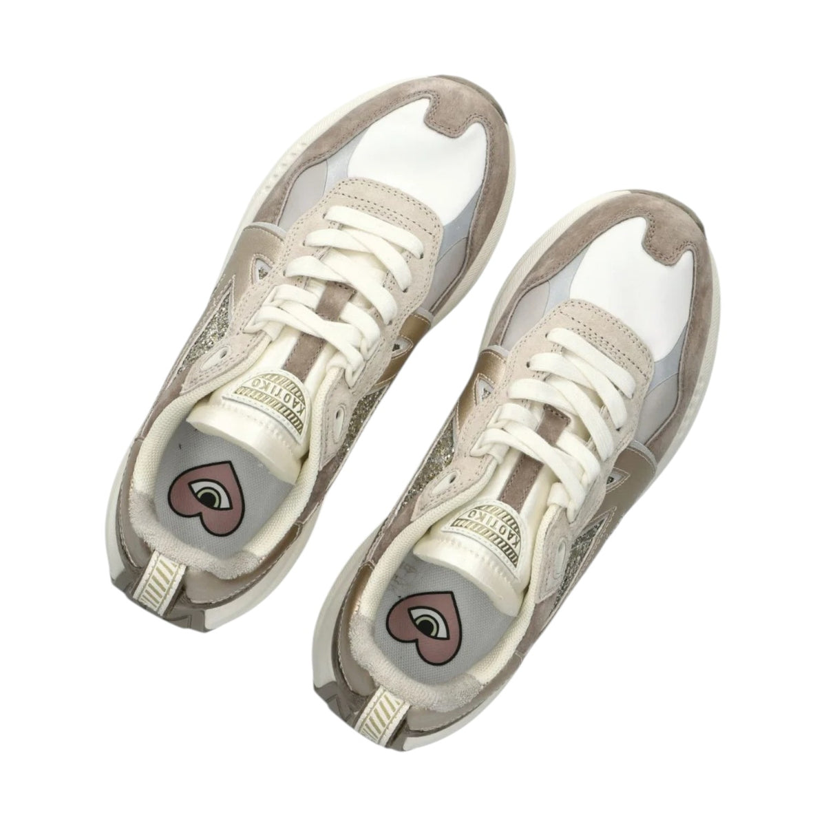 Kaotiko Sneakers Donna in Camoscio e Tessuto Champagne con Strass