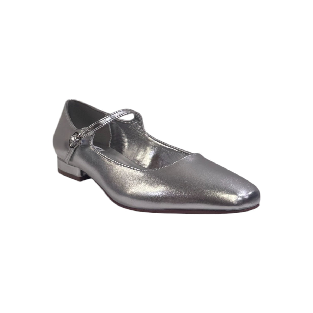 La Chanelle firmata Keys, in questa bellissima variante argento realizzata in ecopelle laminata è caratterizzata da punta squadrata sul davanti da interno in ecopelle con plantare in pelle, inoltre dispone di tacco basso di 2cm per essere fashion ma comodi.