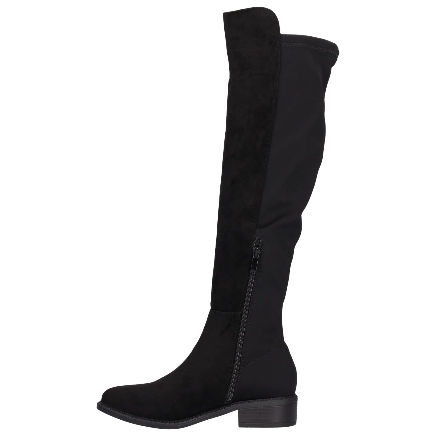 Keys Stivale Alto Donna in Camoscio e Tessuto Nera con Cerniera Laterale