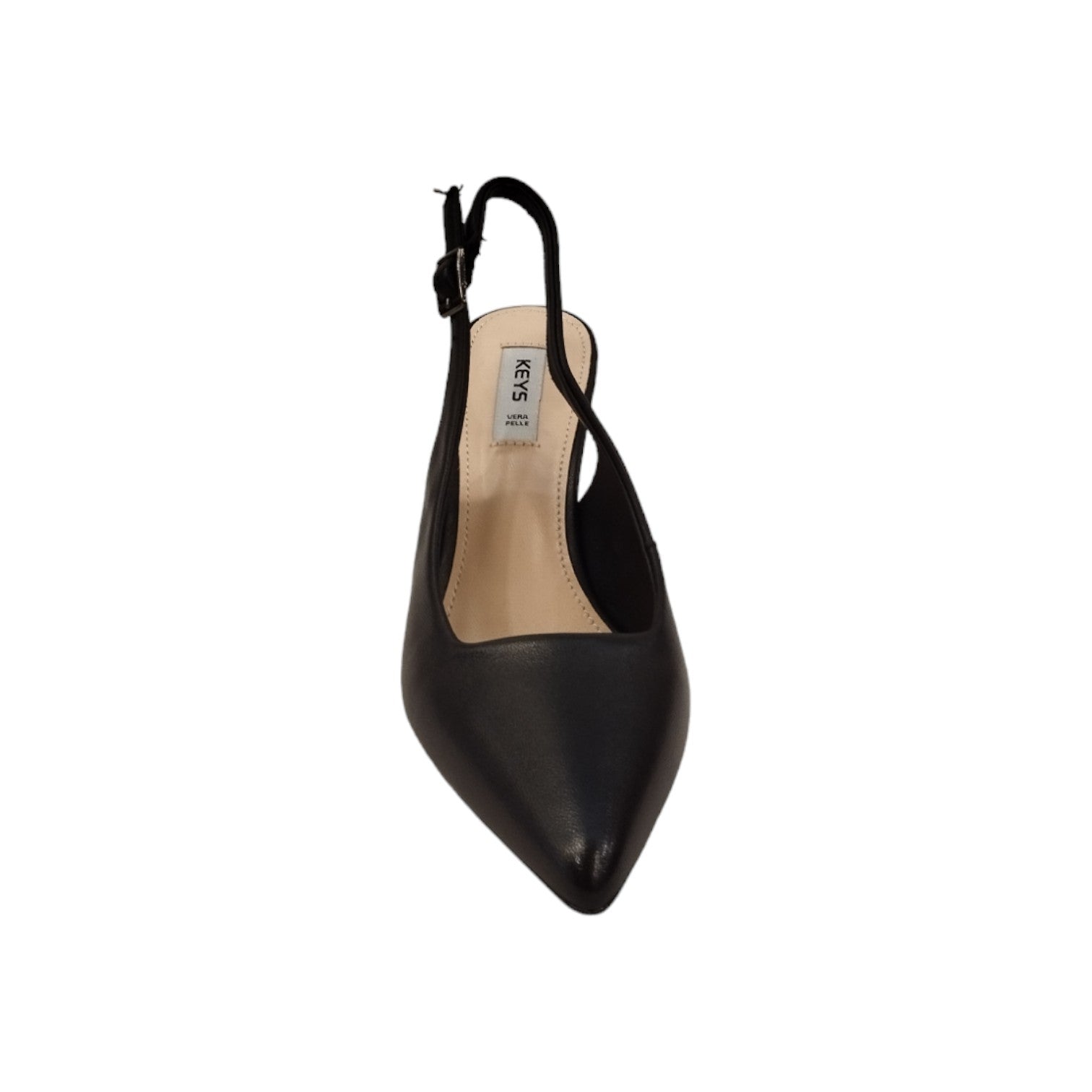La Chanelle firmata Keys, è sinonimo di eleganza e raffinatezza, realizzata in pelle con una punta affusolata, ha un tacco a stiletto alto 9cm che garantisce una postura impeccabile. Il design sinuoso e raffinato si adatta a qualsiasi outfit, dimostrando che la vera eleganza sta nella semplicità.