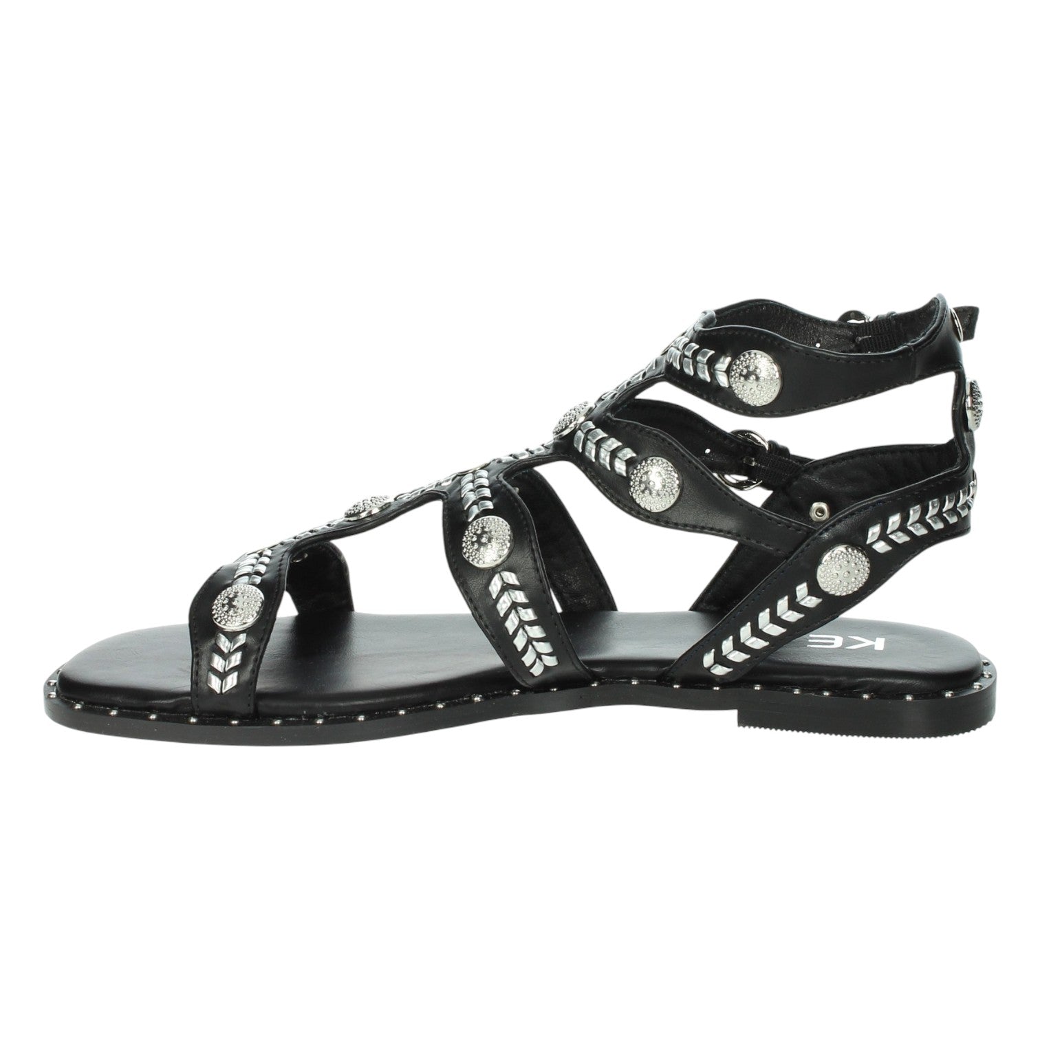 Keys Sandalo Basso Donna in Ecopelle Nero con Borchie e Cinturini