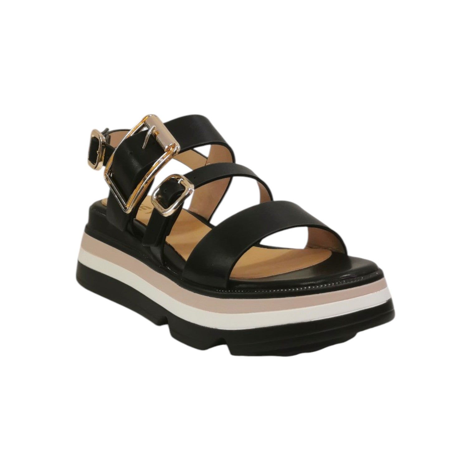 Keys Sandalo Donna in Ecopelle Nera con Doppio Fibbia