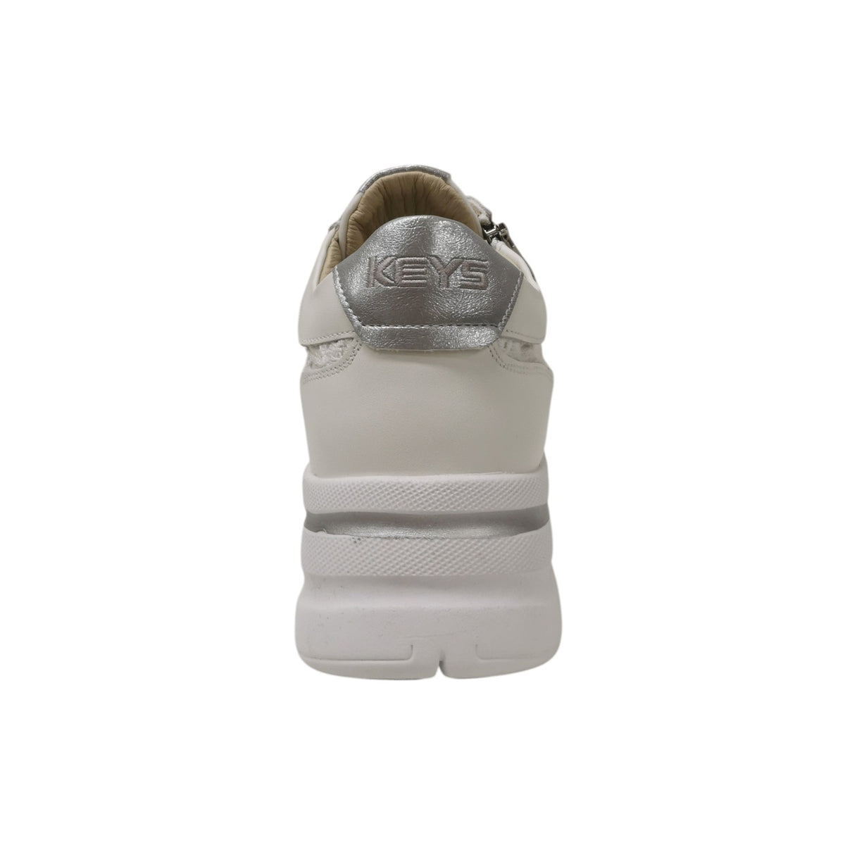 Keys Sneakers Donna Bianca Argento con Lacci e Zip
