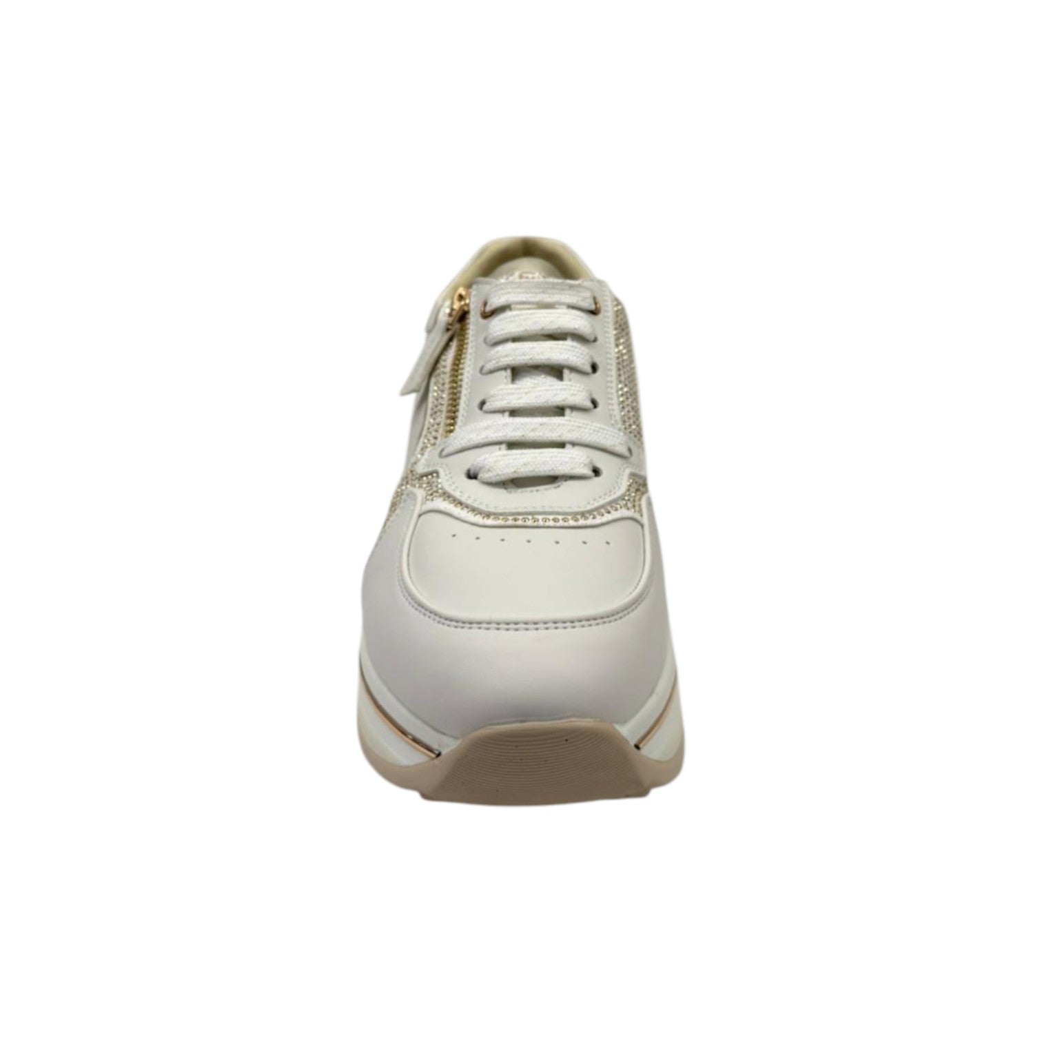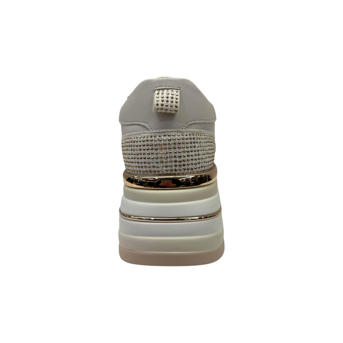 Keys Sneakers Donna in Ecopelle Bianca Oro con Strass e Zeppa
