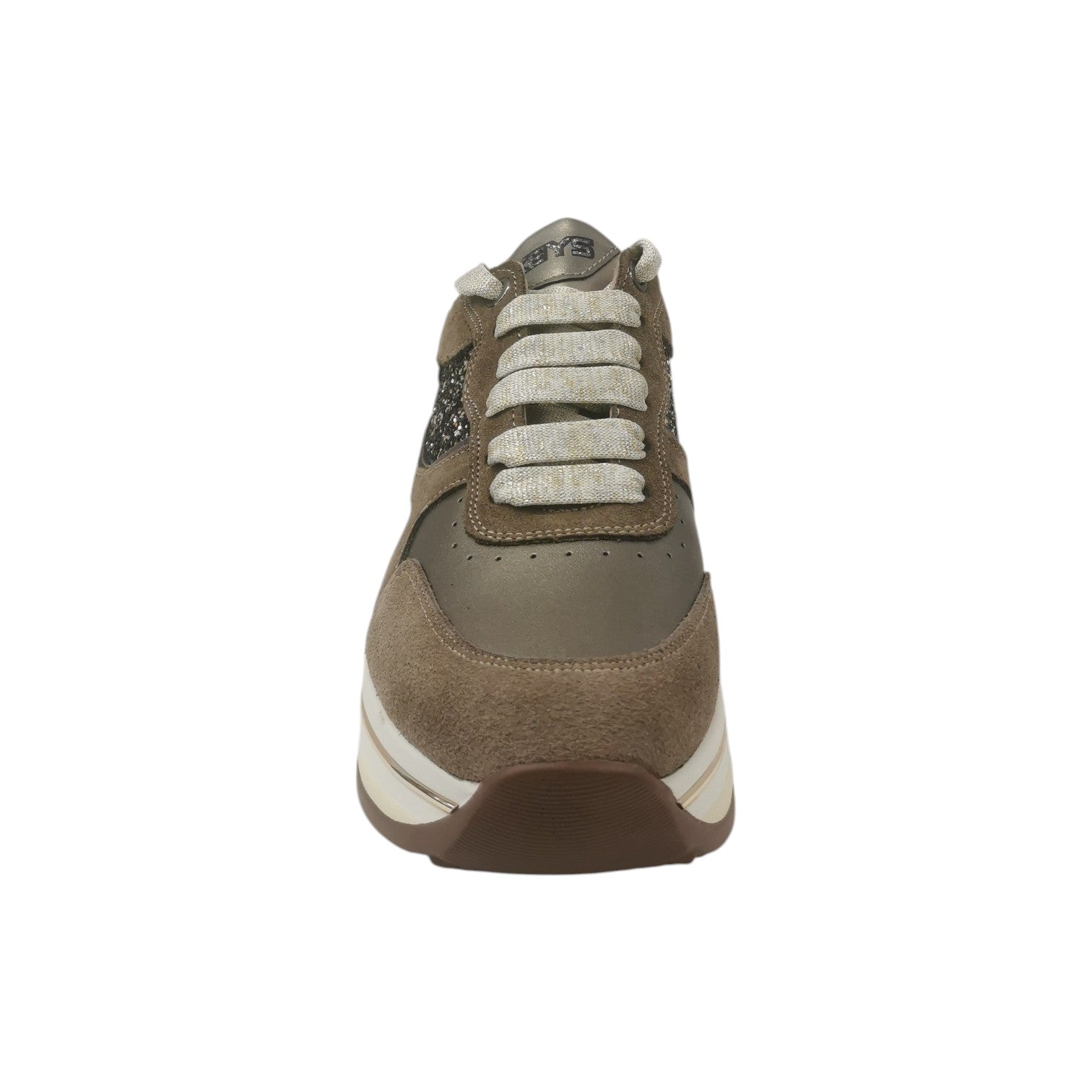 Keys Sneakers Platform Donna in Pelle e Camoscio Tortora Oro
