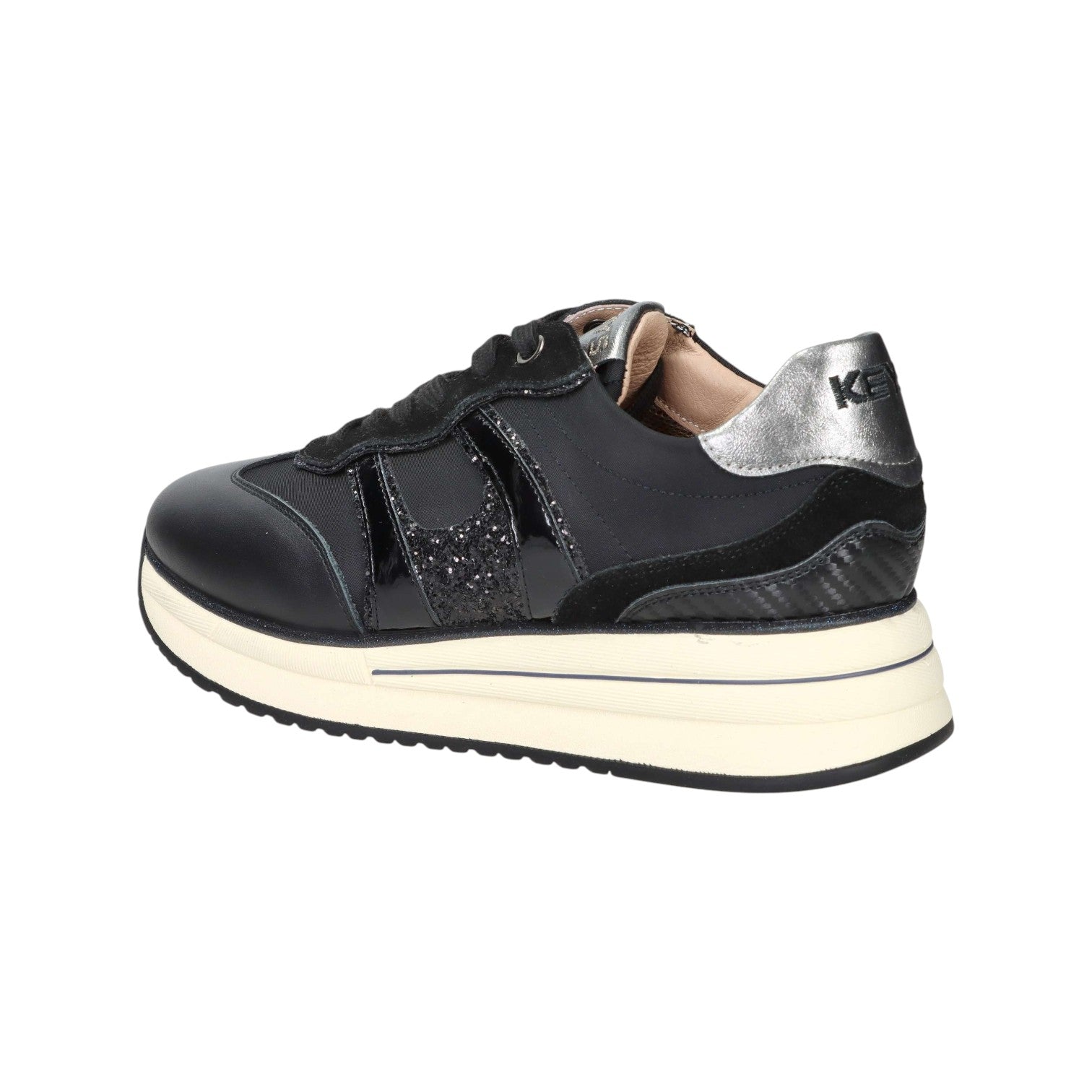 Keys Sneakers Platform Donna in Pelle Nera con Strass