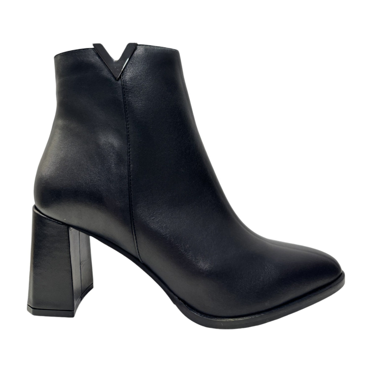 Il Tronchetto firmato L'Amour by Albano, realizzato in pelle è caratterizzato da un accessorio decorativo in metallo posizionato sul gambale e da una chiusura con zip laterale. Presenta un comodo tacco quadrato alto 7cm, l'interno è foderato in ecopelle e sottopiede in pelle.