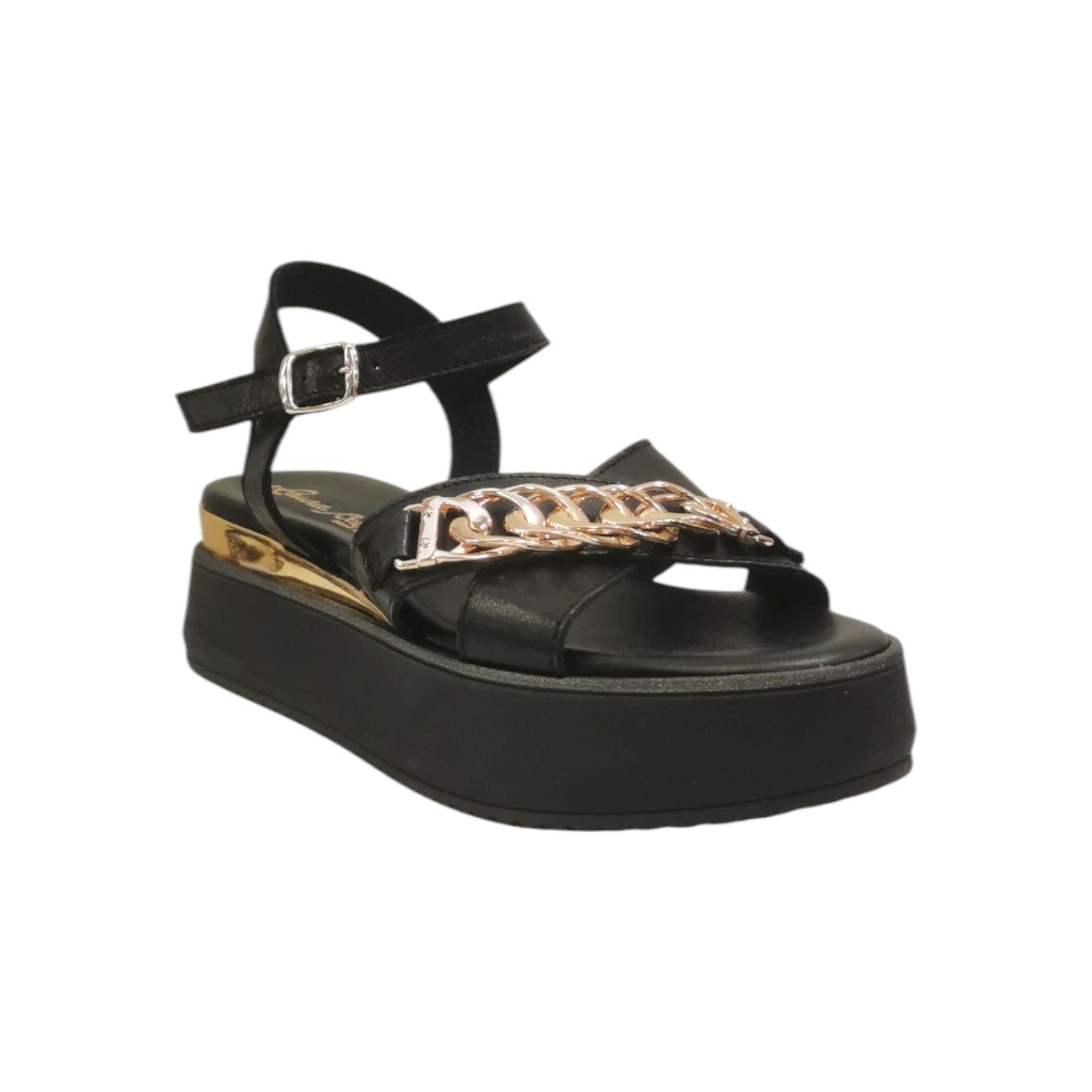 Laura Bizzarri Sandalo Nero con Zeppa e Catena da Donna