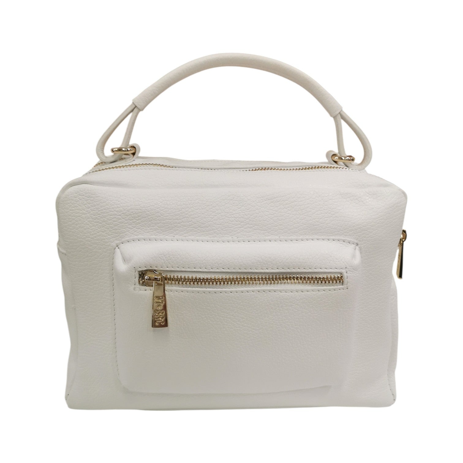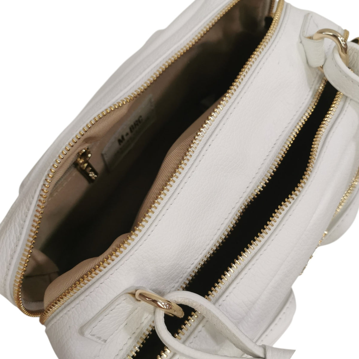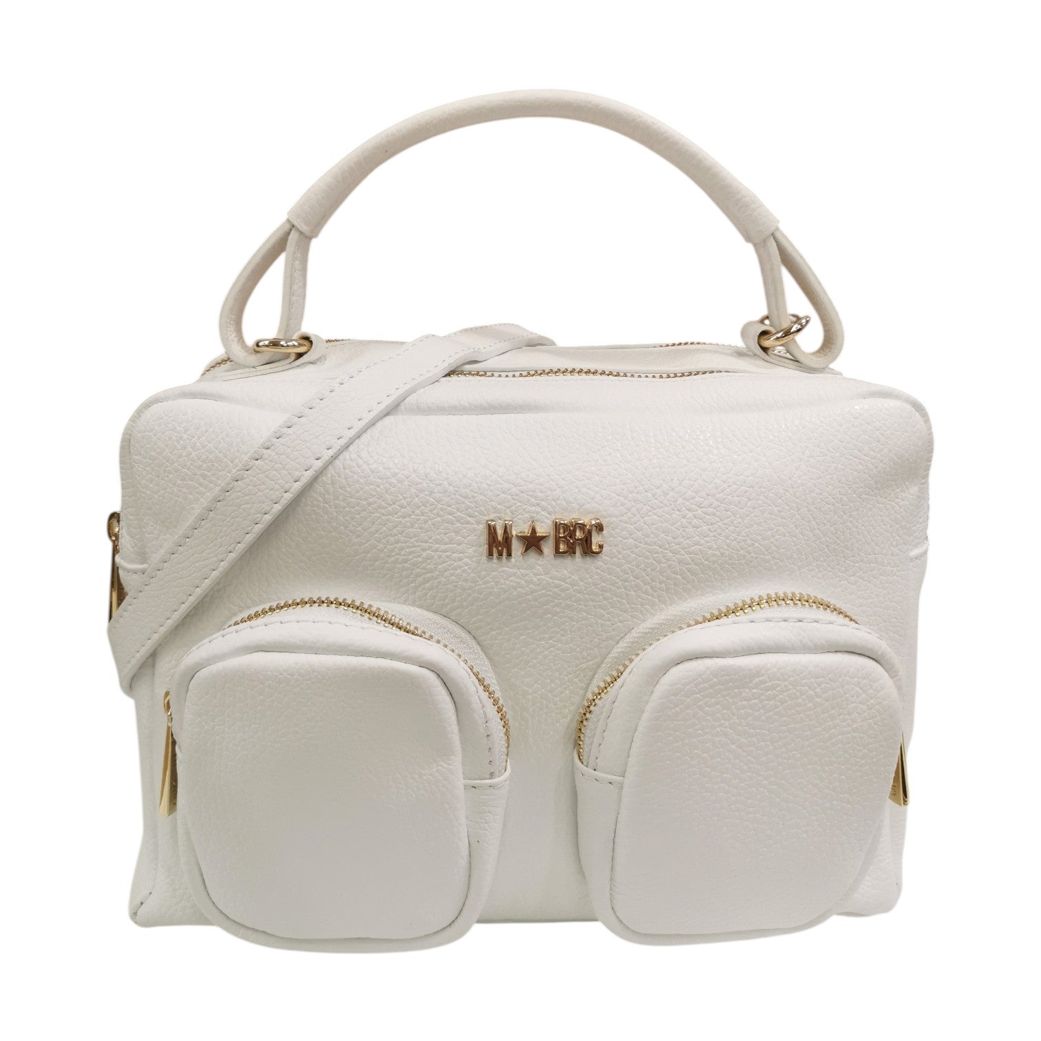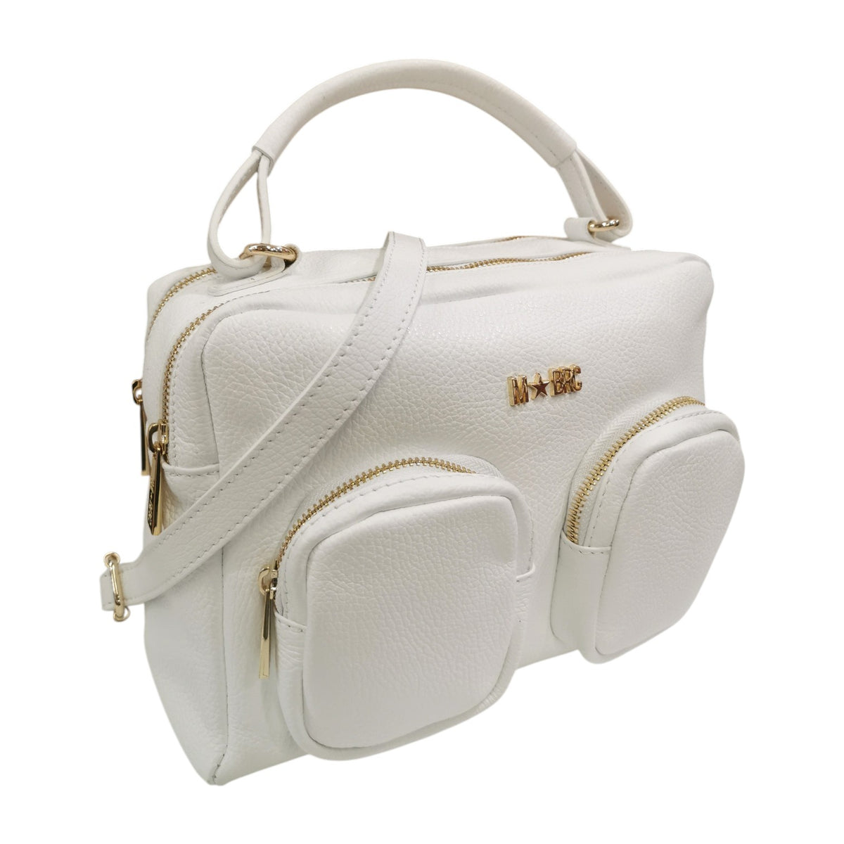 M Brc Borsa a Mano Donna in Pelle Bianco Linea Voyager con Tasconi Frontali e Tracolla