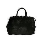 M Brc Borsa a Mano Piccola Donna Linea Glam in Pelliccia Sintetica Nera con Doppia Tracolla