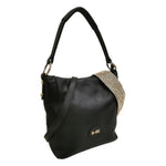 M Brc Borsa a Spalla Donna Linea Chic in Pelle Nera con Manico Strass