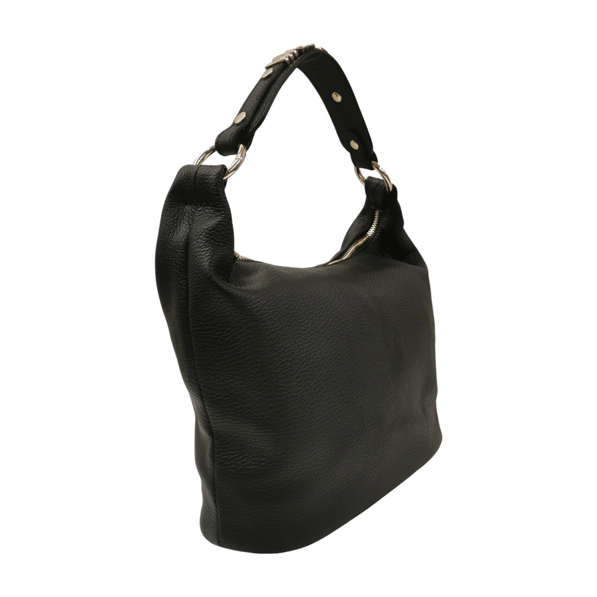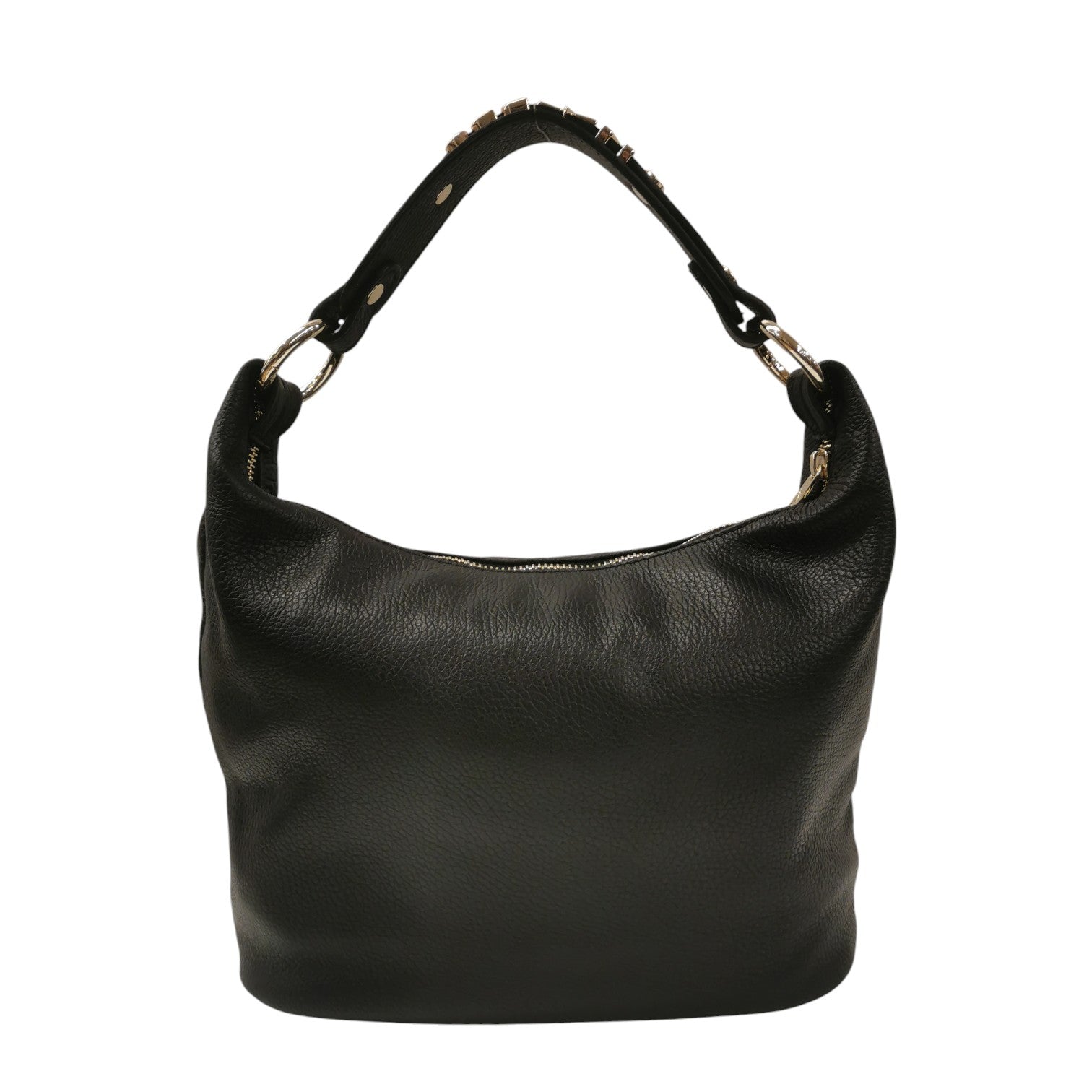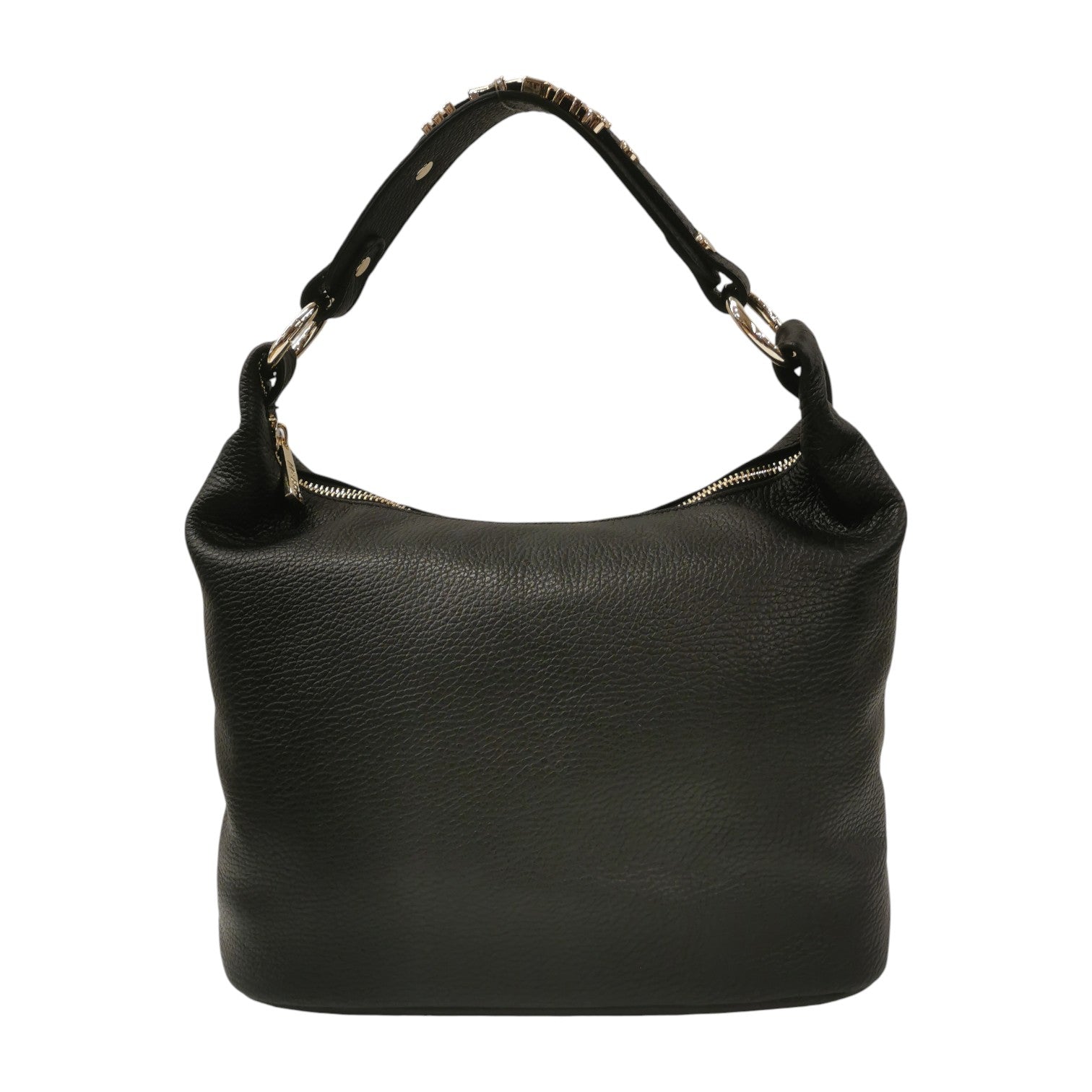 M Brc Borsa a Spalla Donna Linea Lettering in Pelle Nera con Logo Dorato