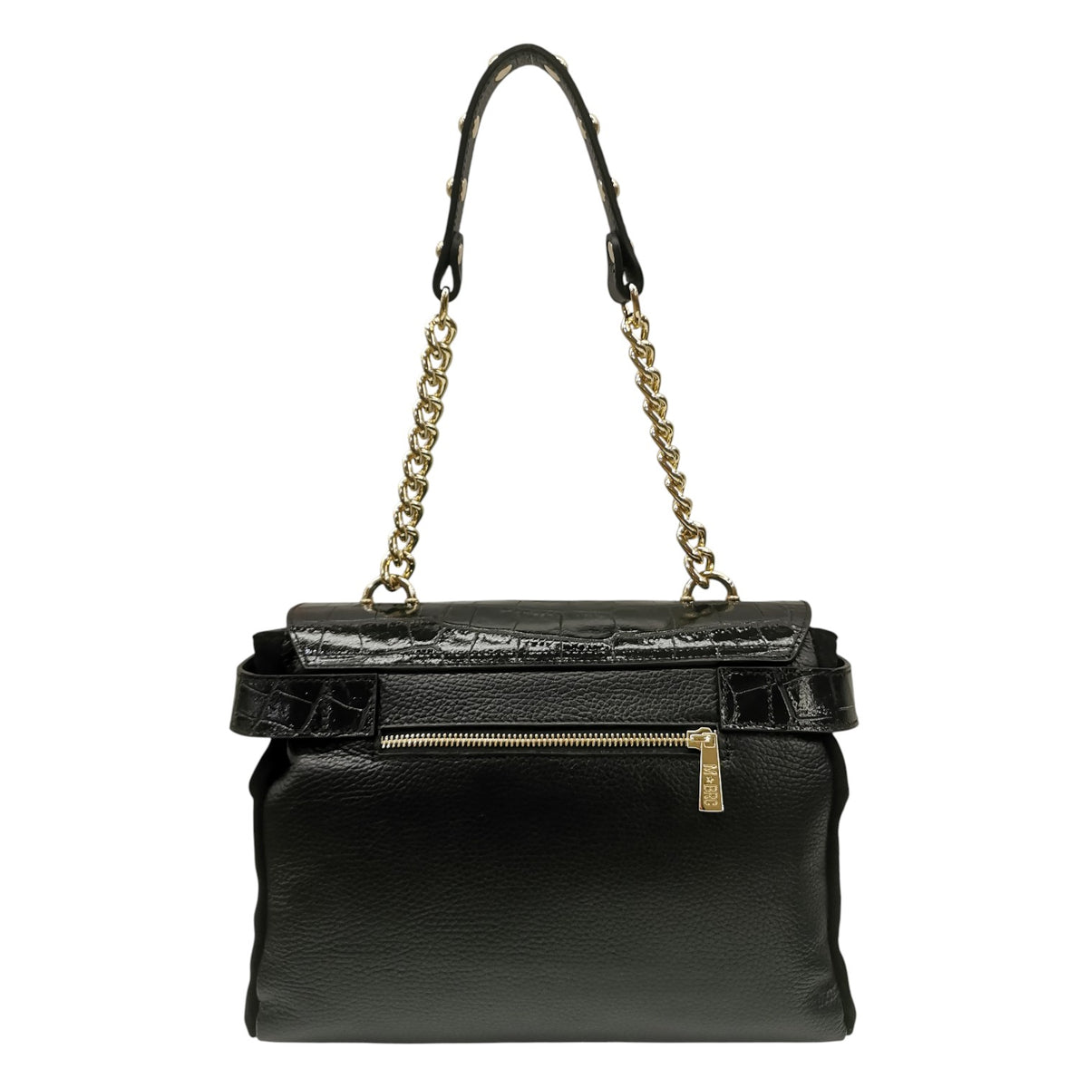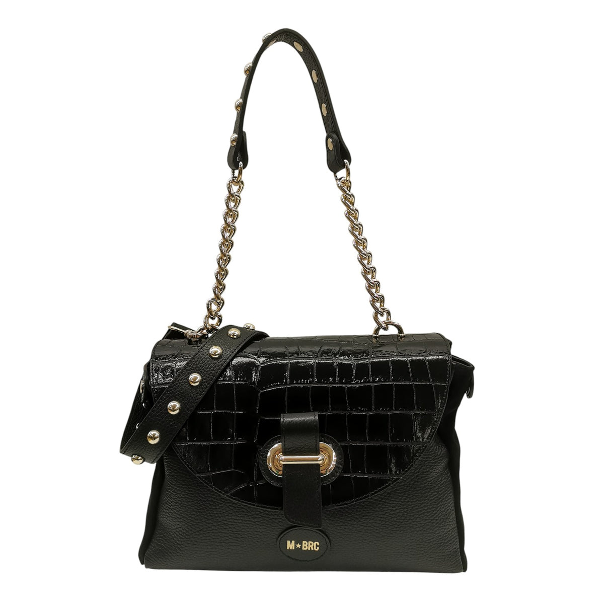 M Brc Borsa a Spalla Donna Linea Millebolle in Pelle Nera Cocco con Patta e Catena