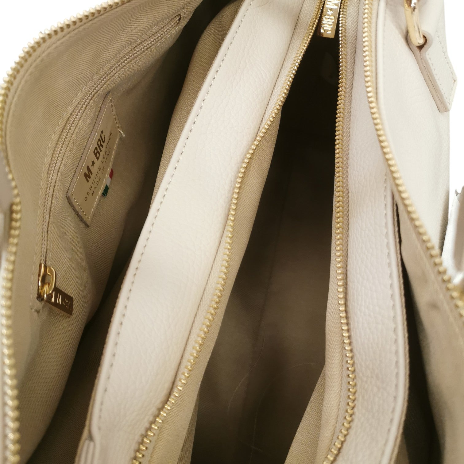 M Brc Borsa a Spalla Donna Linea Onda in Pelle Avorio con Doppia Tracolla