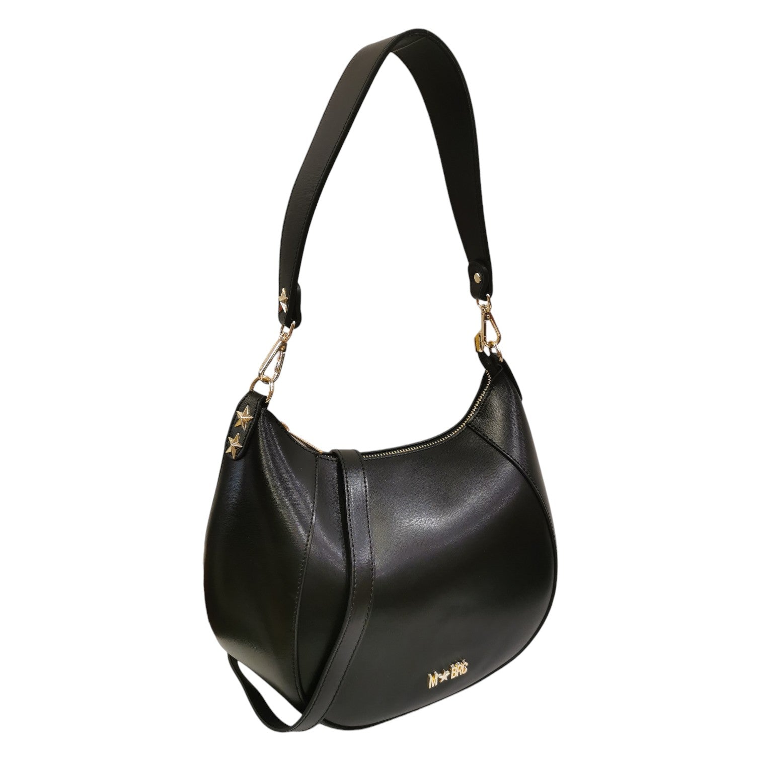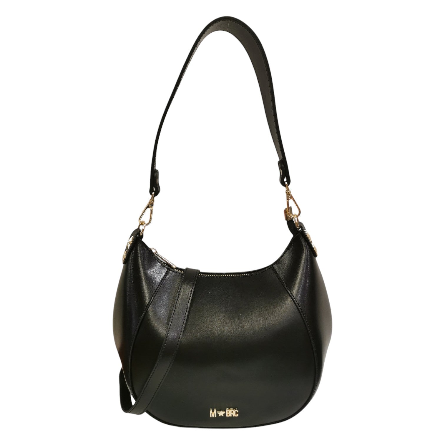 M Brc Borsa a Spalla Media Linea Curvy Donna in Pelle Nera Con Pochette e Chiusura con Cerniera