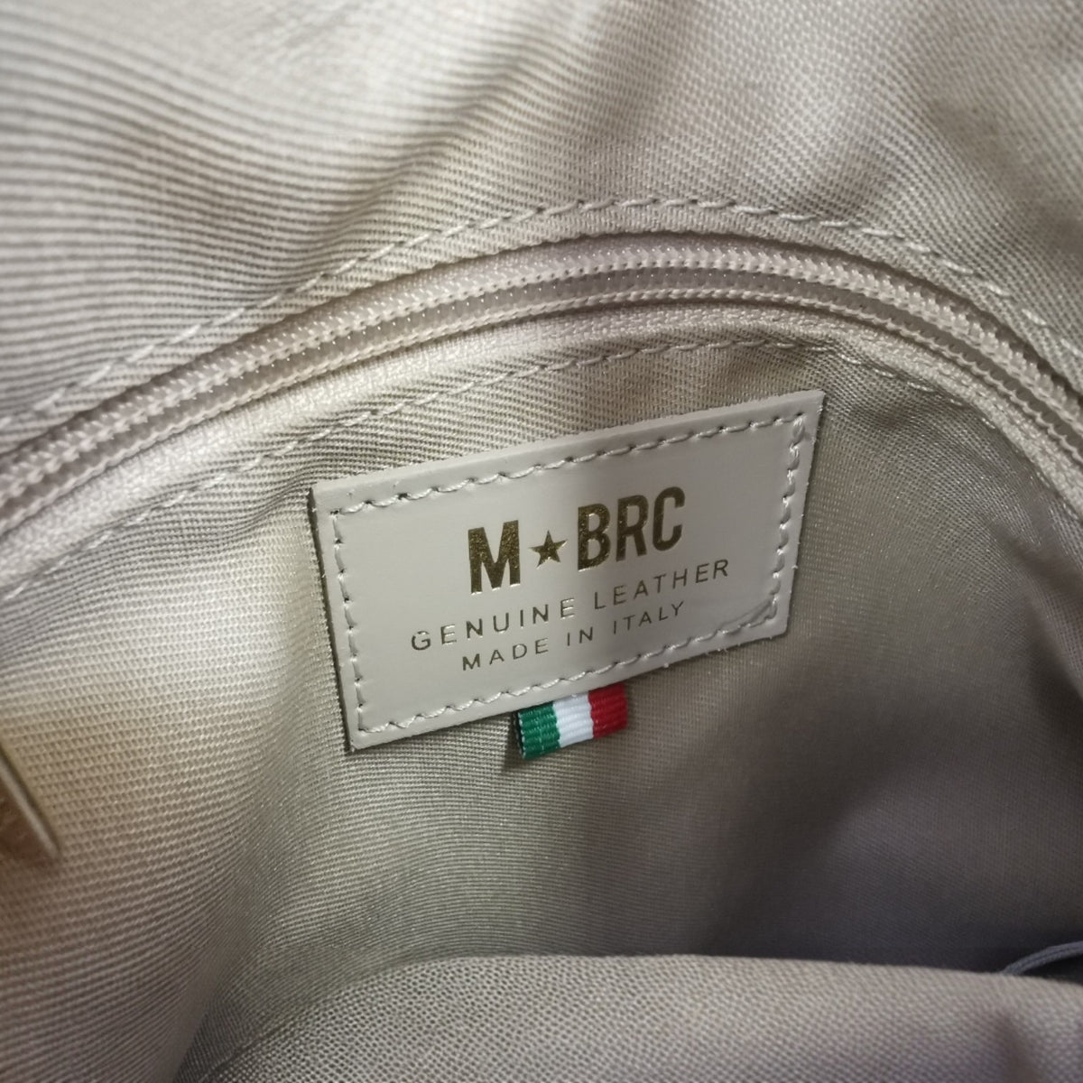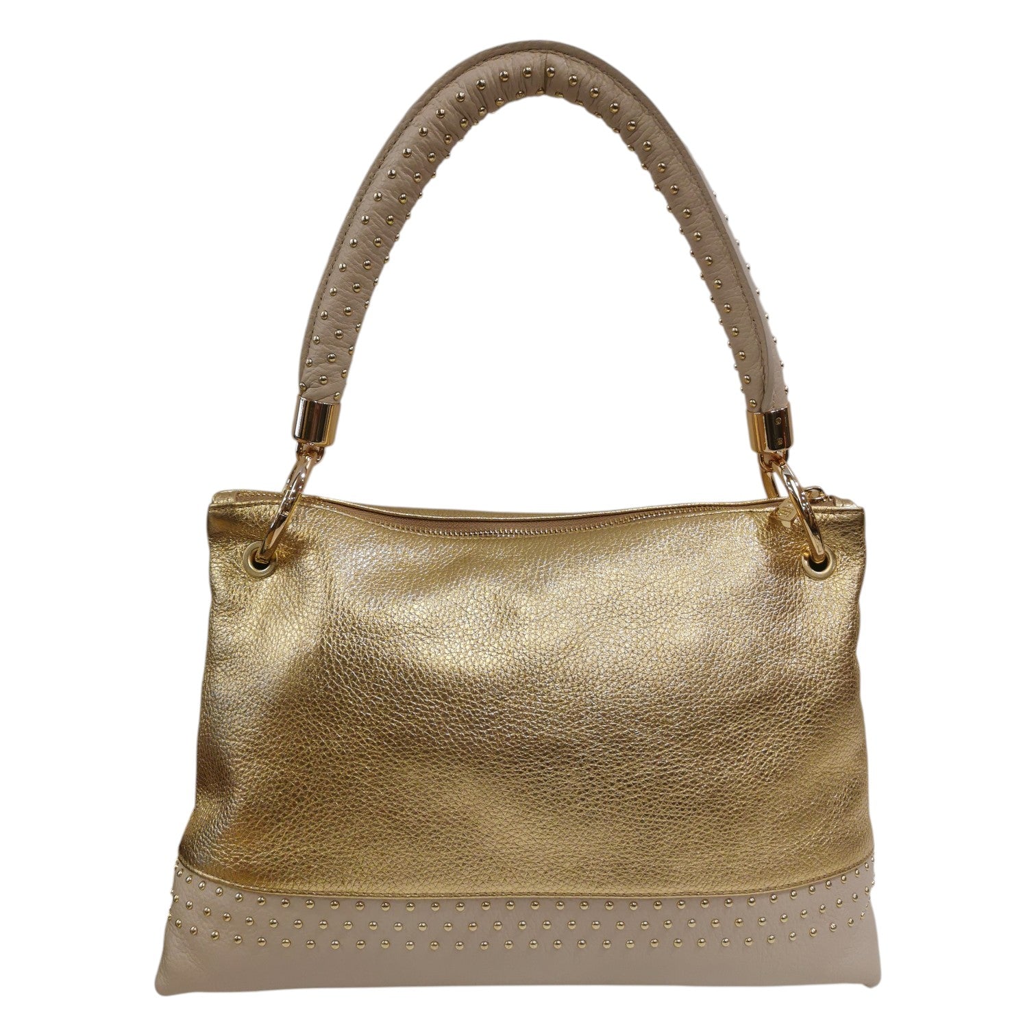 M Brc Borsa a Spalla Donna Linea Chiodo in Pelle Oro Avorio con Tracolla