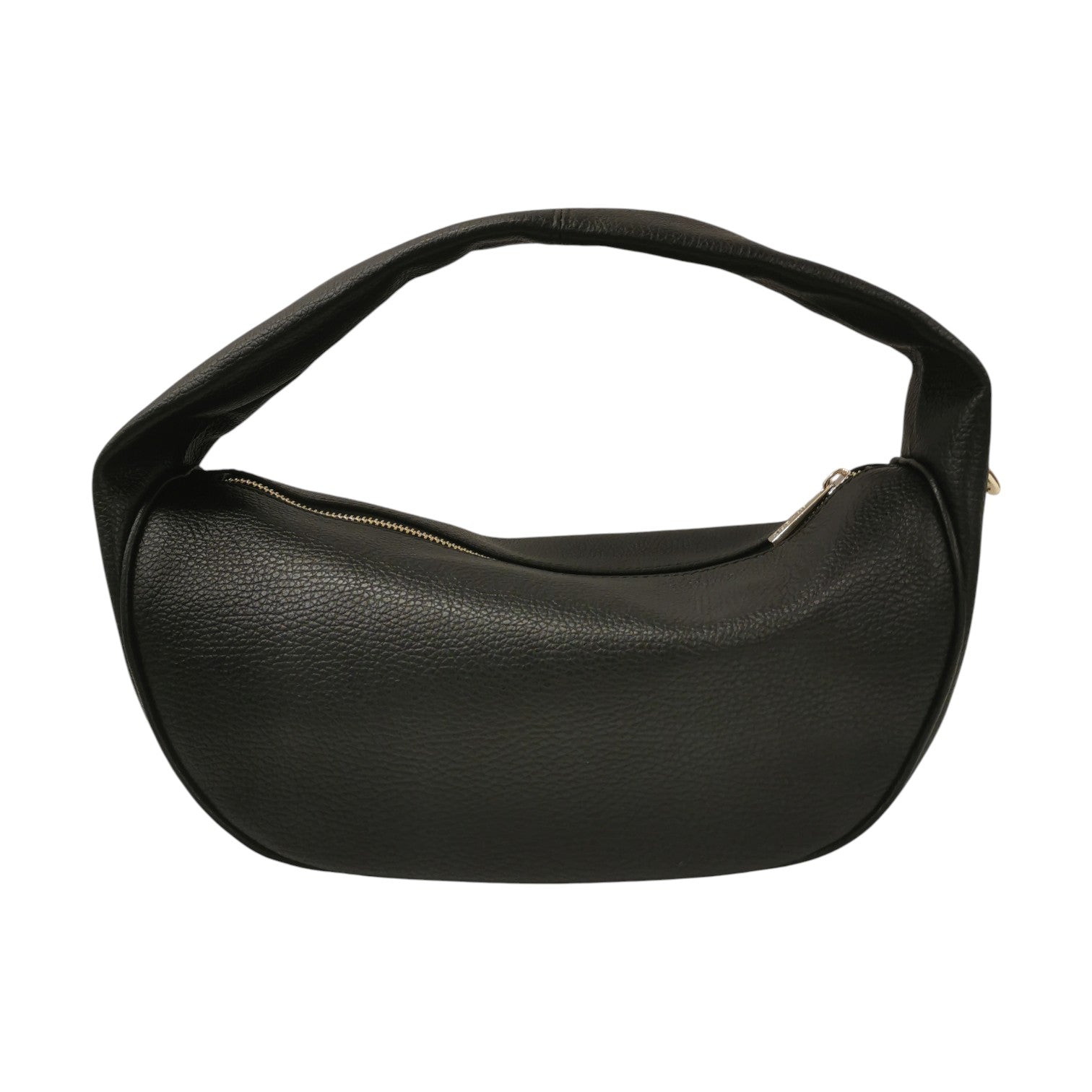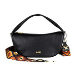 M Brc Borsa a Spalla Piccola Mezzaluna Donna Linea Obona in Pelle Nera con Doppia Tracolla