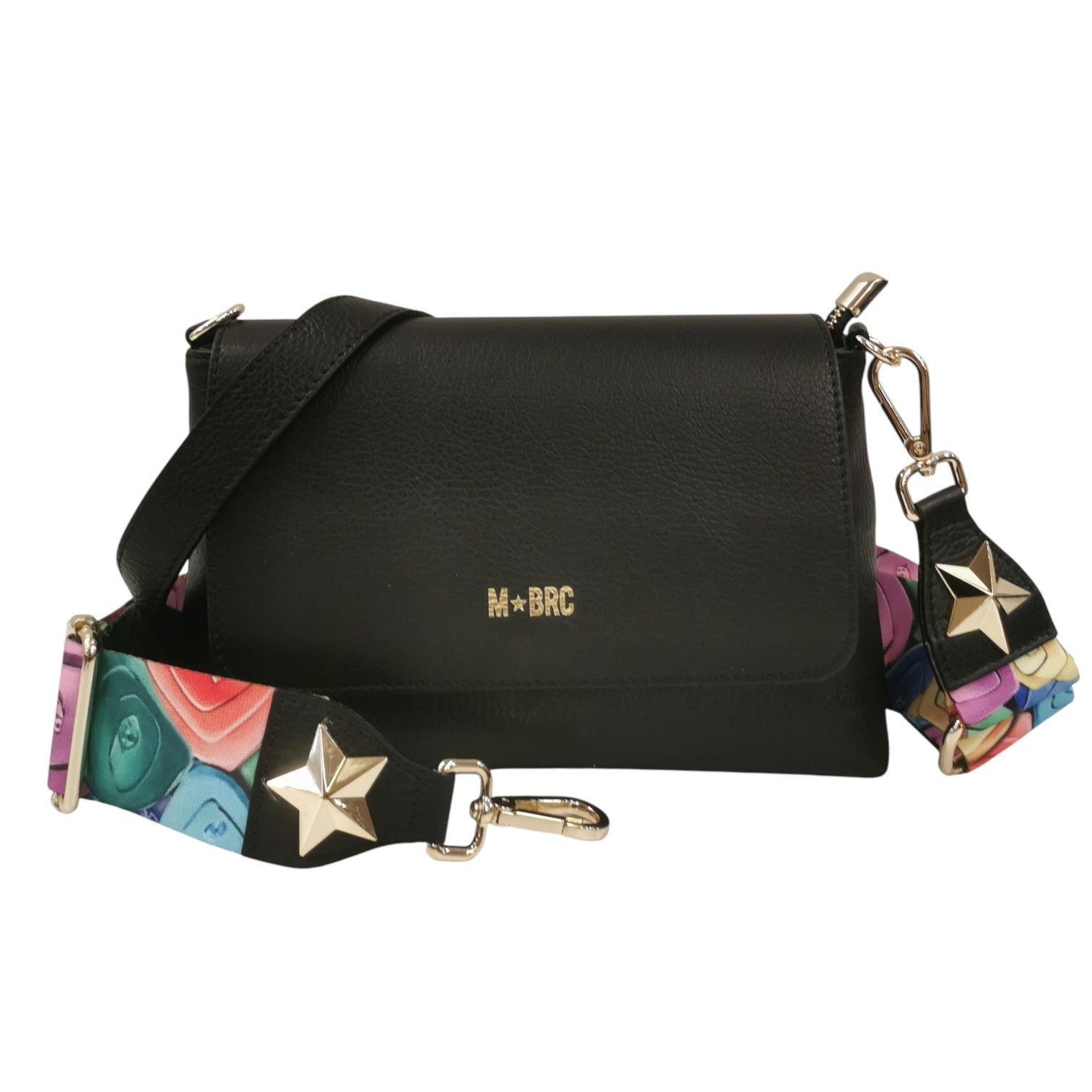 M Brc Borsa a Tracolla Donna Linea Obona in Pelle Martellata Nera