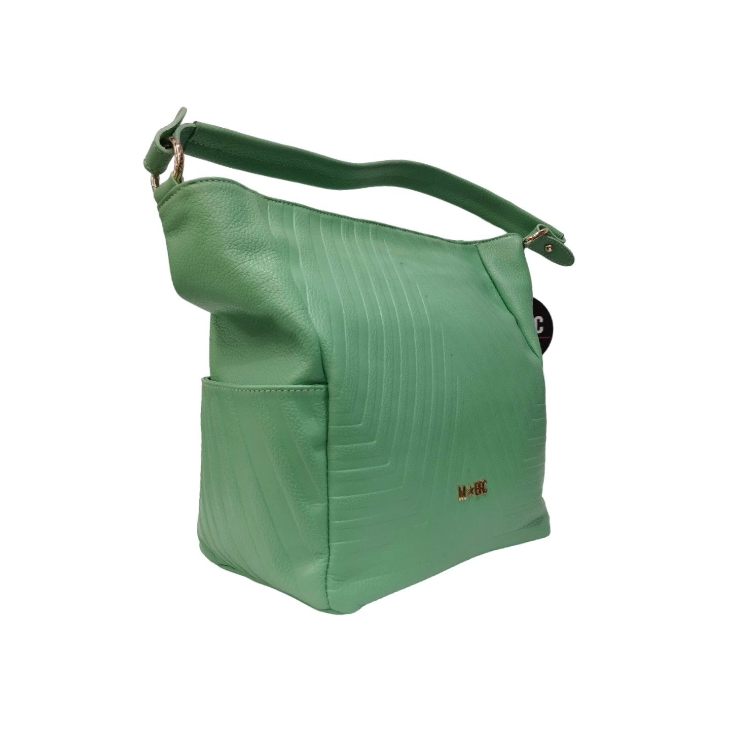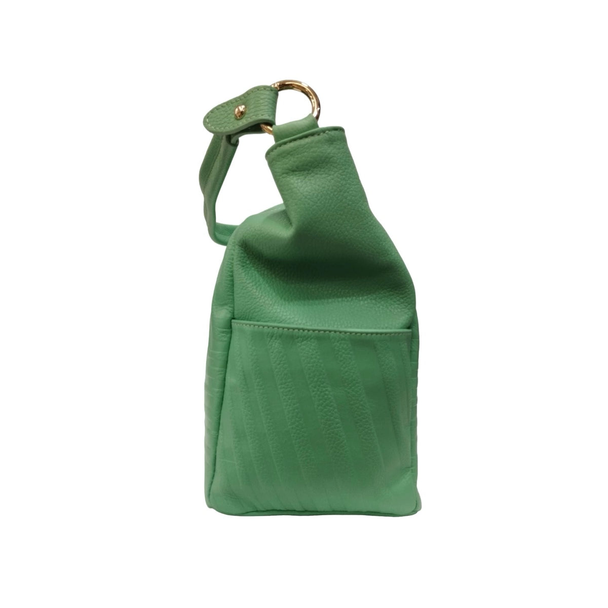 M Brc Borsa a spalla verde in pelle con 2 tasche laterali a filetto