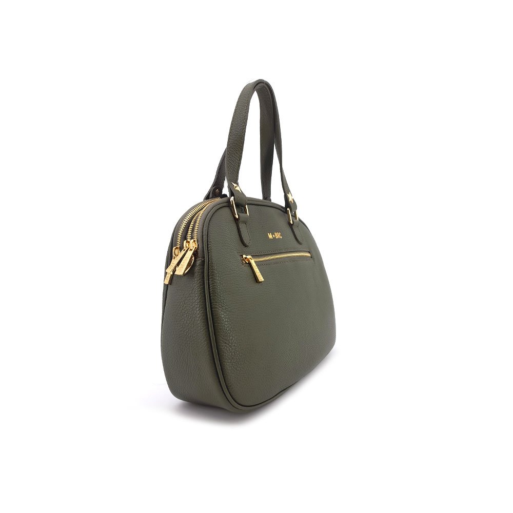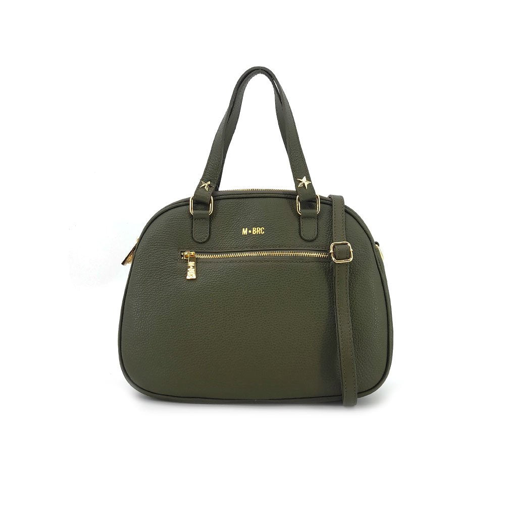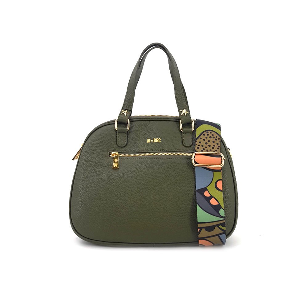 M Brc Borsa a mano ulivo in pelle obona con tracolla in tessuto a fantasia