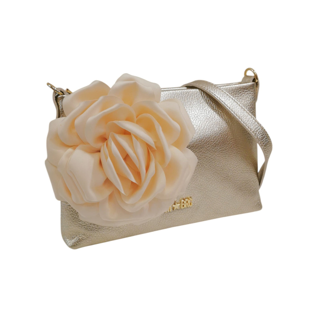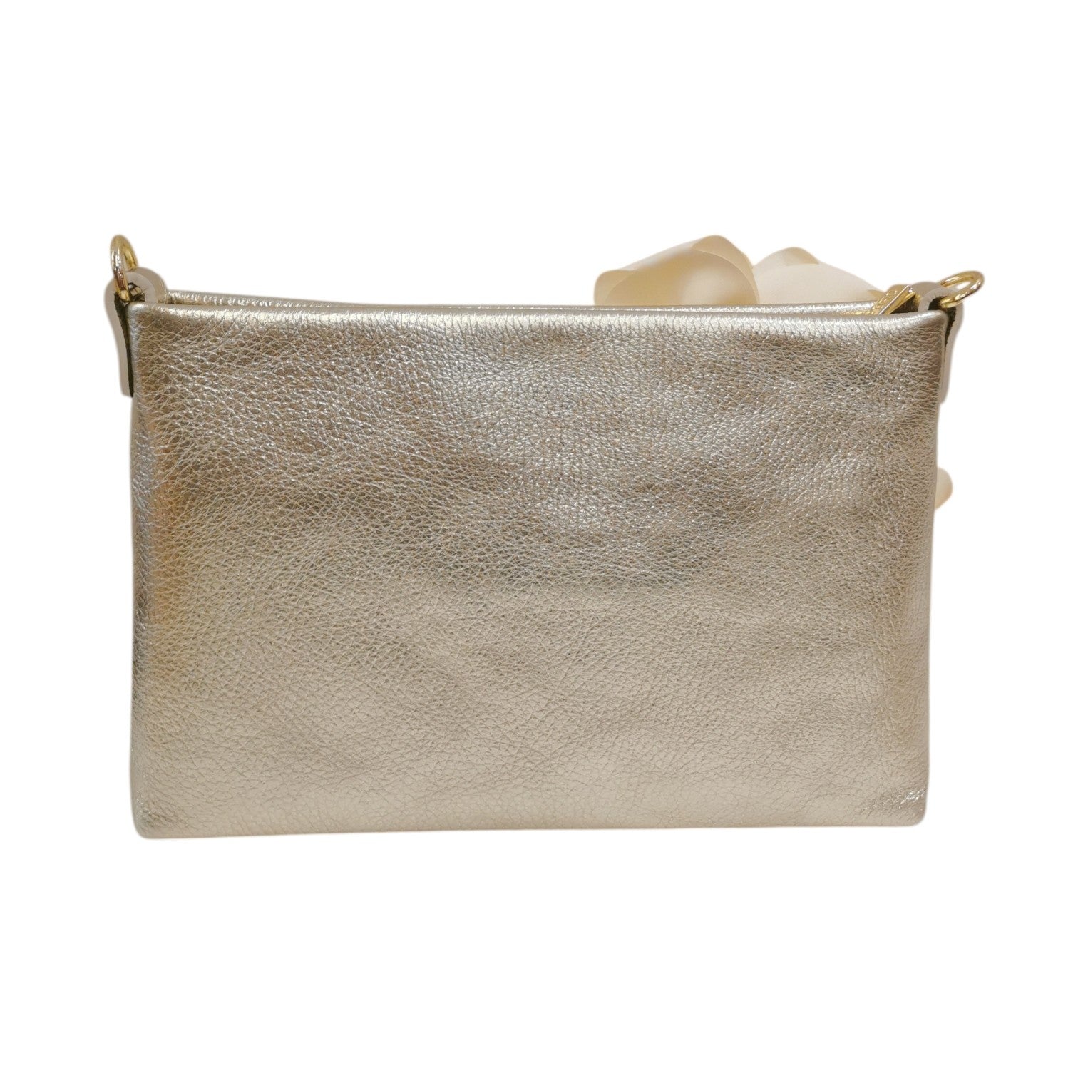 M Brc Pochette Donna in Pelle Platino Linea Dream con Fiore Laterale in Raso