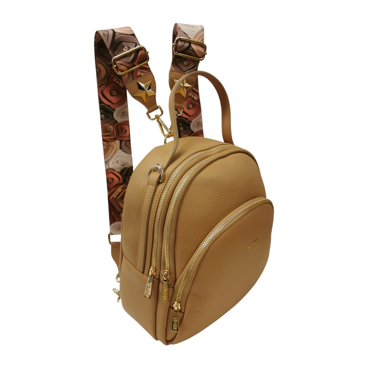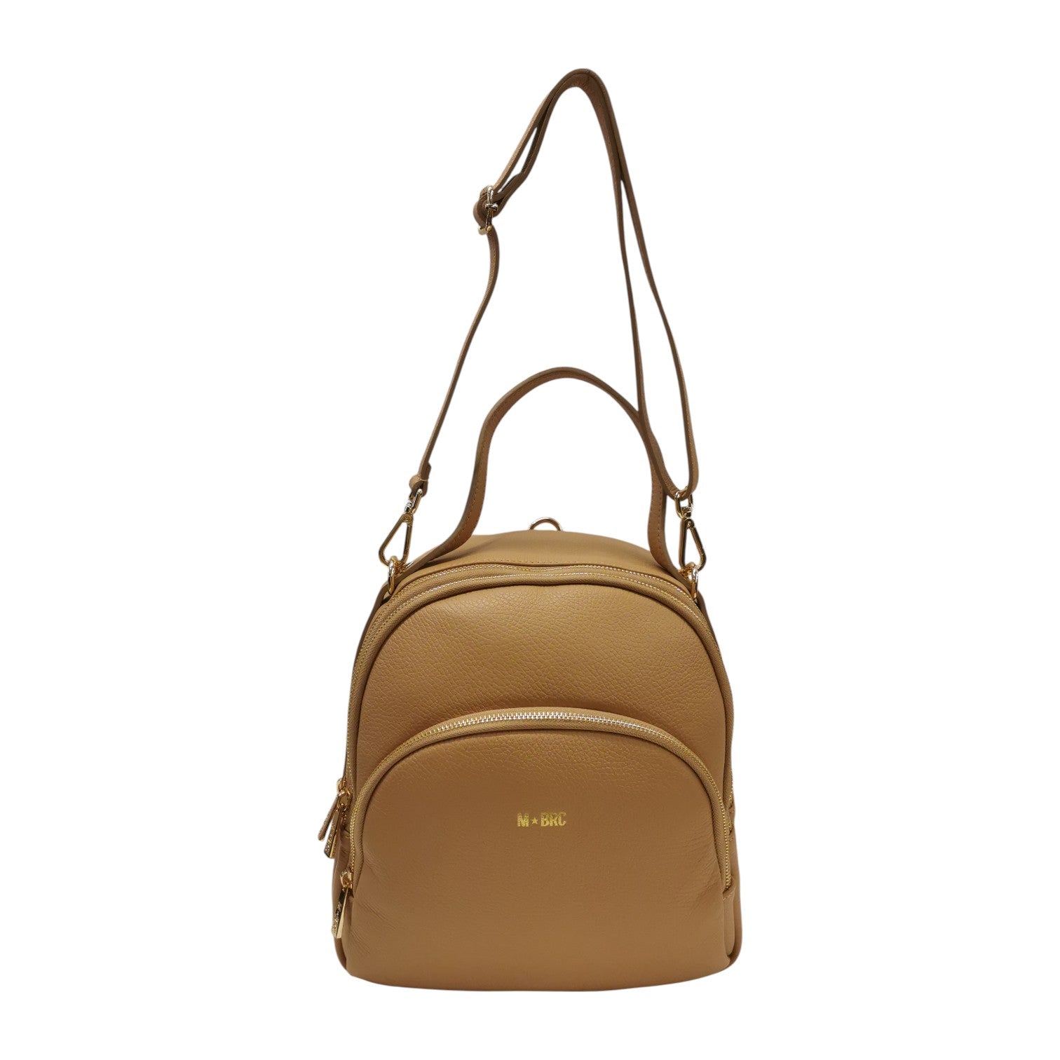 M Brc Zaino a Borsa Donna Linea Obona in Pelle Cammello con Doppi Spallacci e Scomparti