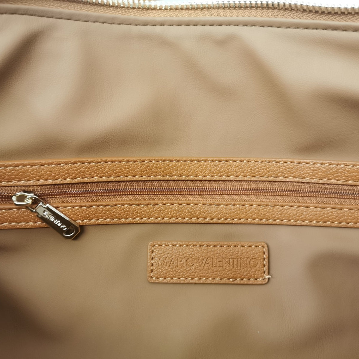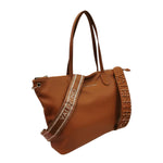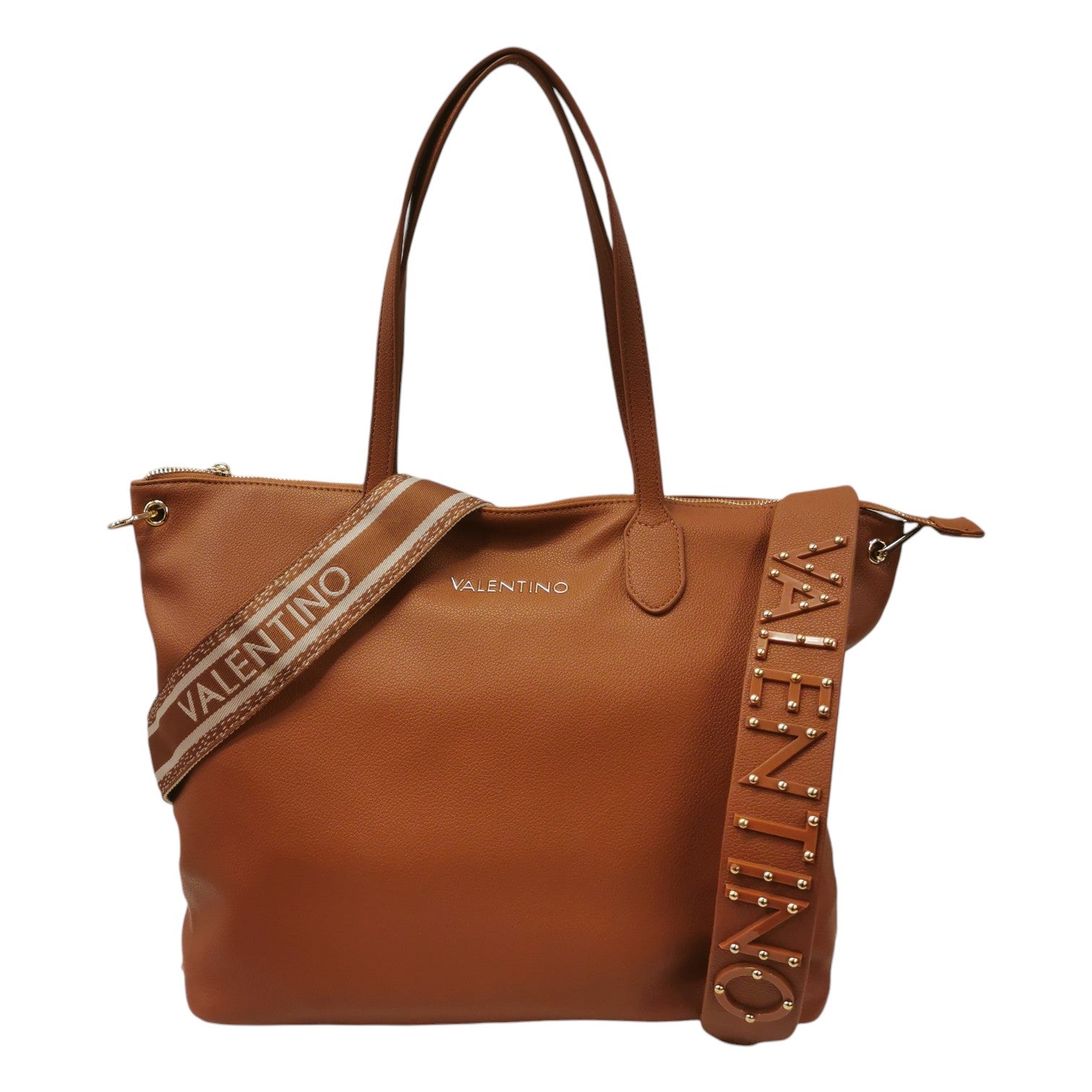La Borsa a spalla firmata Mario Valentino, realizzata in ecopelle qui proposta nella variante cuoio è caratterizzata da logo lettering frontale in metallo e da doppia tracolla una in tessuto ed una in ecopelle logata con applicazione di borchiette, mentre l'interno è foderato in tessuto di cui dispone di tasca con zip.
