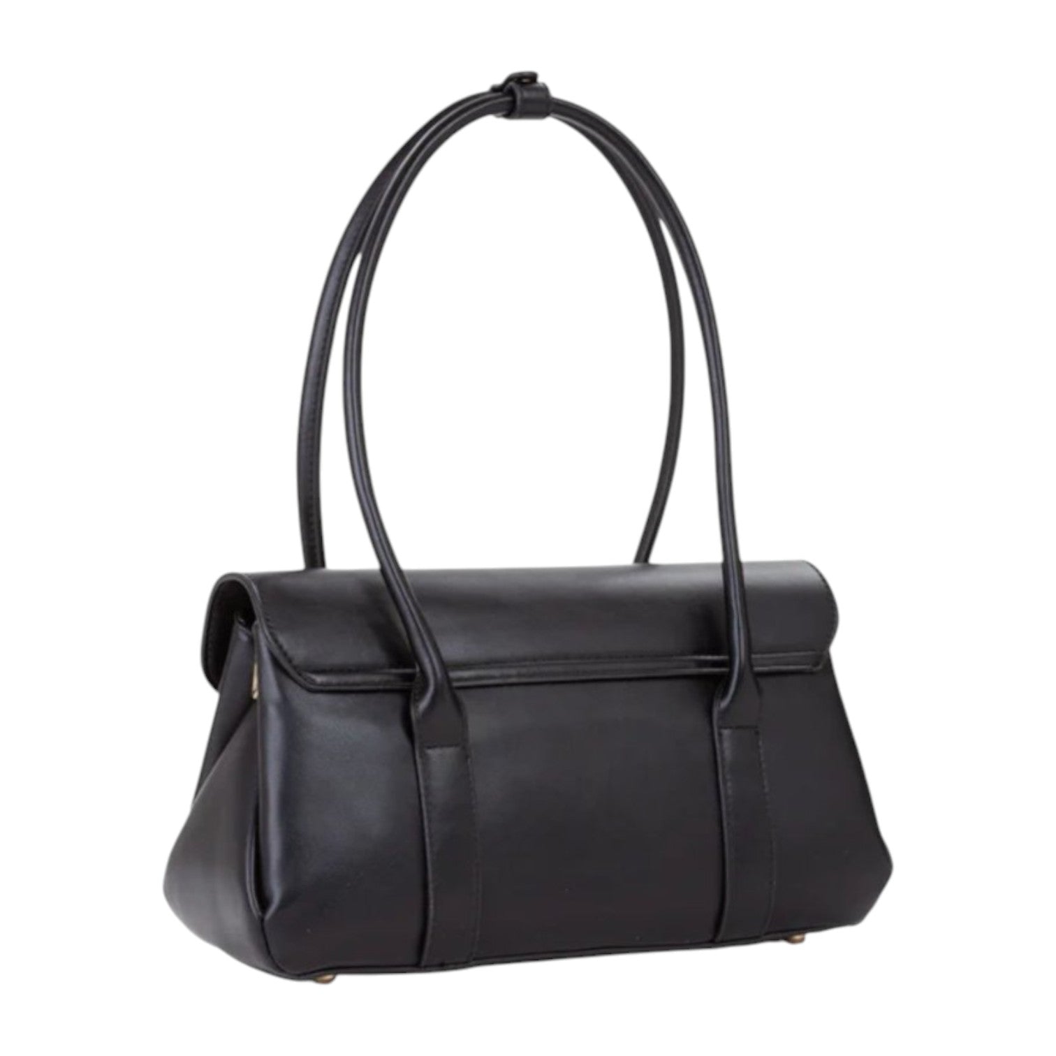 La Borsa a spalla firmata Mario Valentino, realizzata in ecopelle nera strutturata con doppi manici e chiusura a patta, pensata per una comoda indossabilità a spalla. L'interno offre diversi scomparti per organizzare gli oggetti essenziali di tutti i giorni