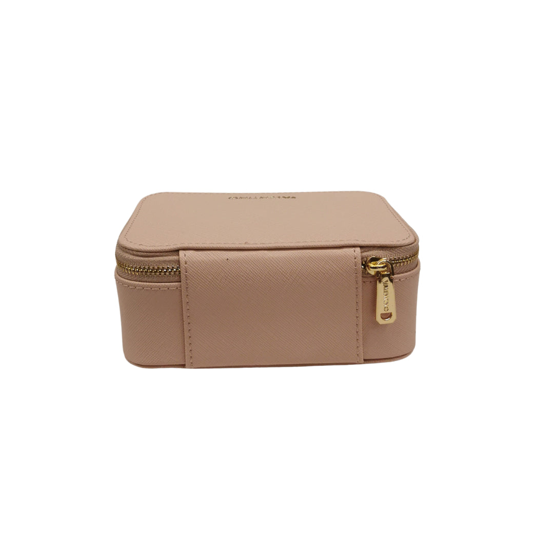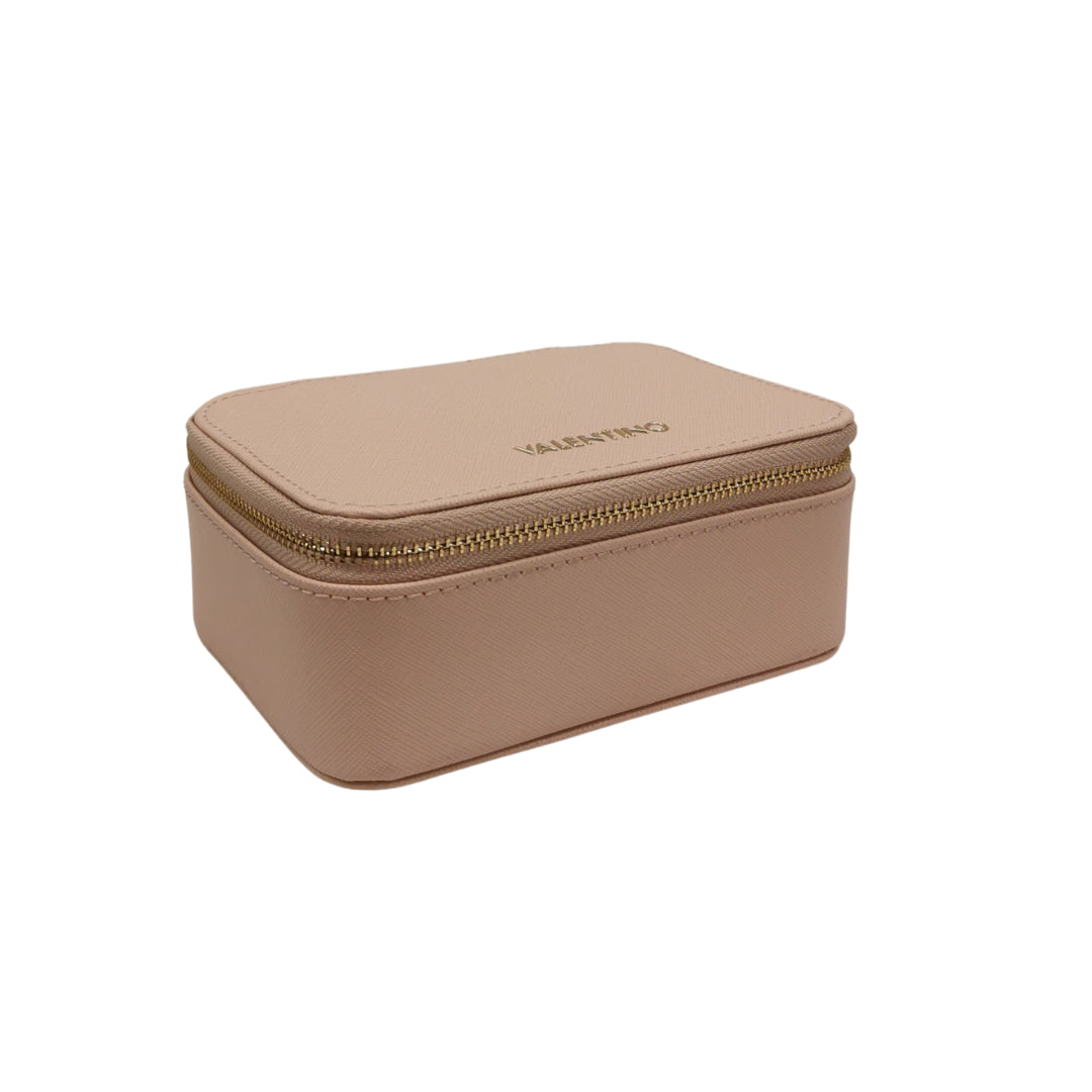 Il piccolo Porta gioie firmato Mario Valentino realizzato in ecopelle cipria, è una soluzione elegante e pratica per riporre tutti i tuoi gioielli. Il piccolo porta gioie si apre con una zip presenta sui tre lati. L'interno è principalmente fatto di morbido velluto, compreso di una tasca, sul lato è presente un porta anelli. Pratico da portare con se, in un viaggio o da tenere nella propria borsa.