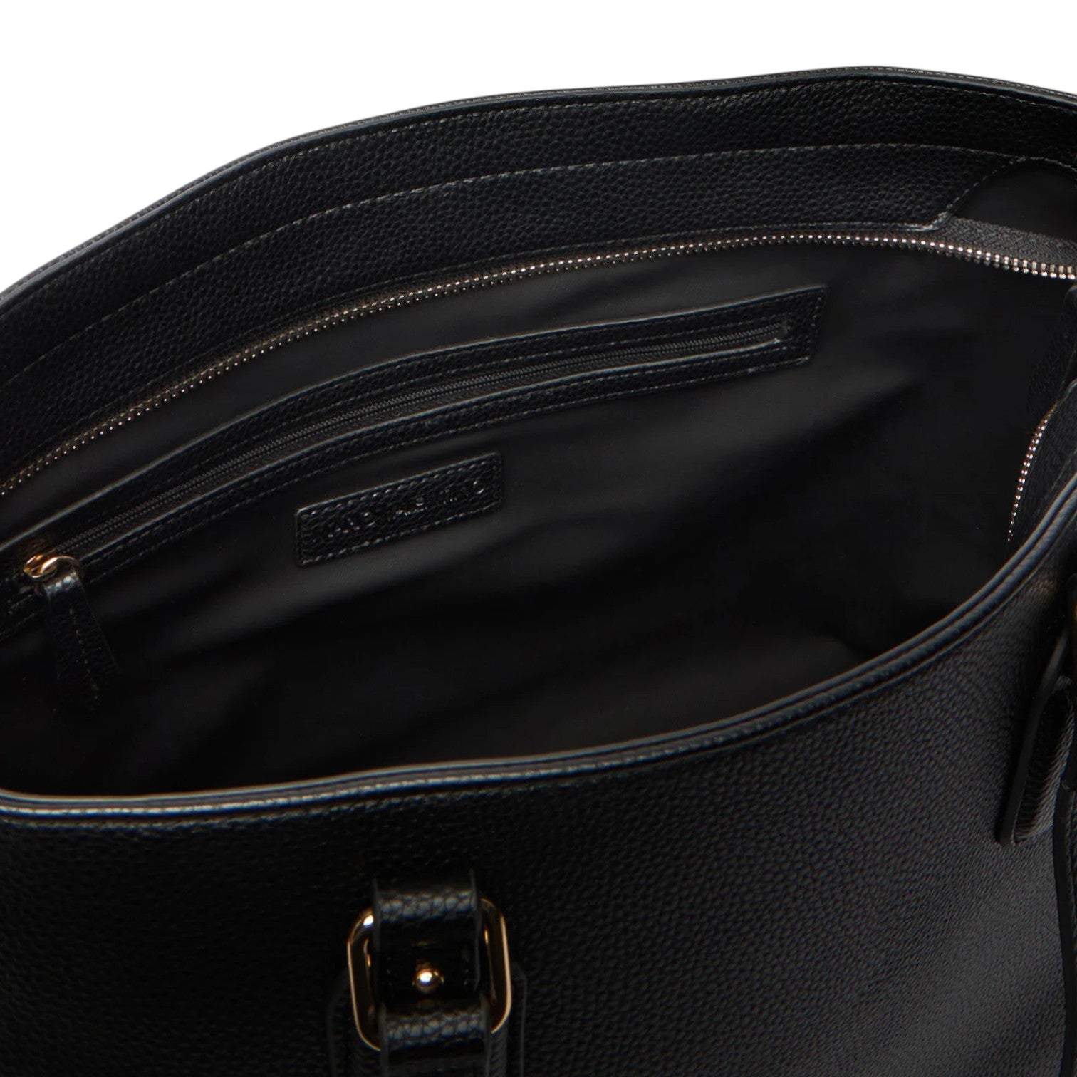 La Shopping bag firmata Mario Valentino, qui proposta nella variante nera presenta una texture martellata è caratterizzata da logo lettering frontale e da interno con tasca con zip. Design elegante e funzionale che si adatta a qualsiasi stile, combinando praticità e stile.