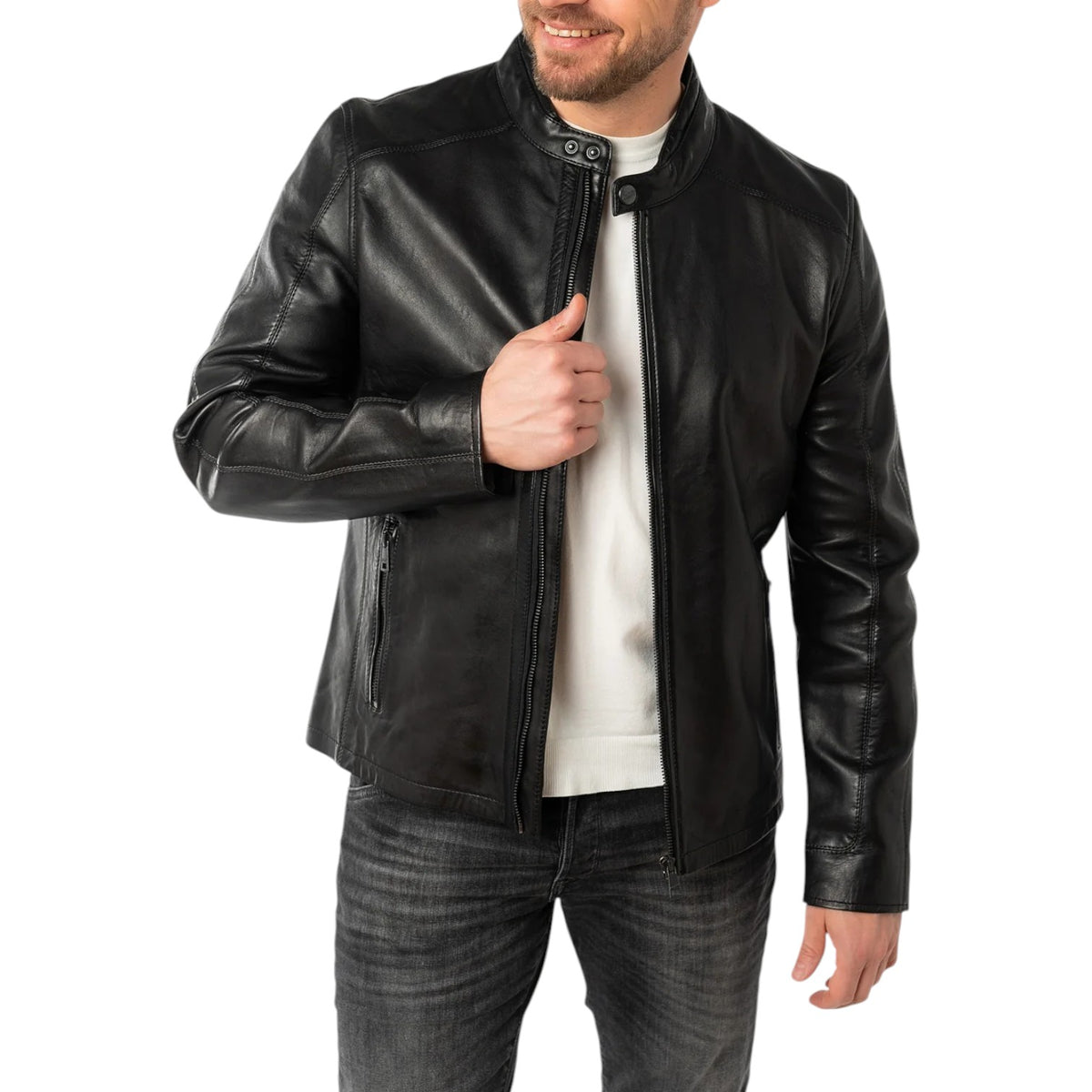 Mauritius Giacca da Motociclista Uomo in Pelle Nera