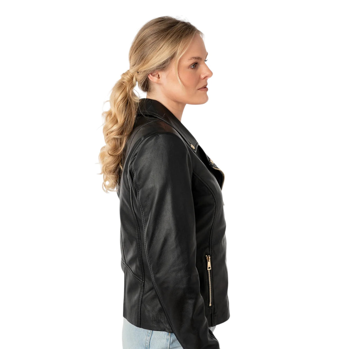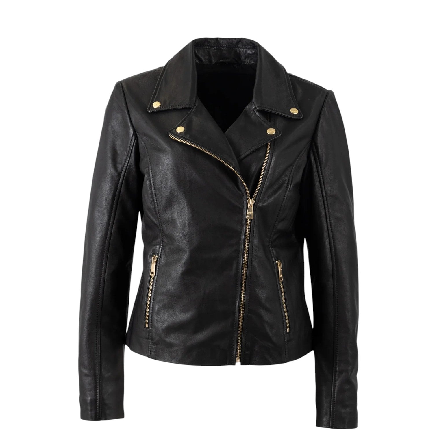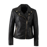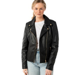 Mauritius Giubbotto Donna in Pelle Nera con Cerniere Oro