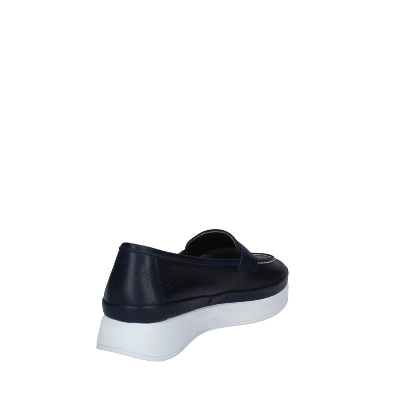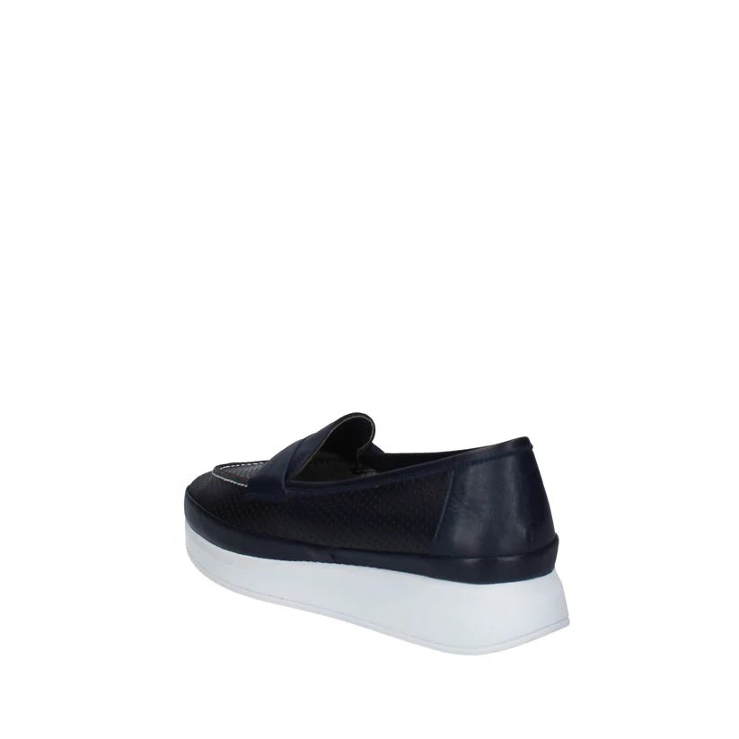 Melluso Mocassino Donna in Pelle Traforata Blu con Fondo Platform
