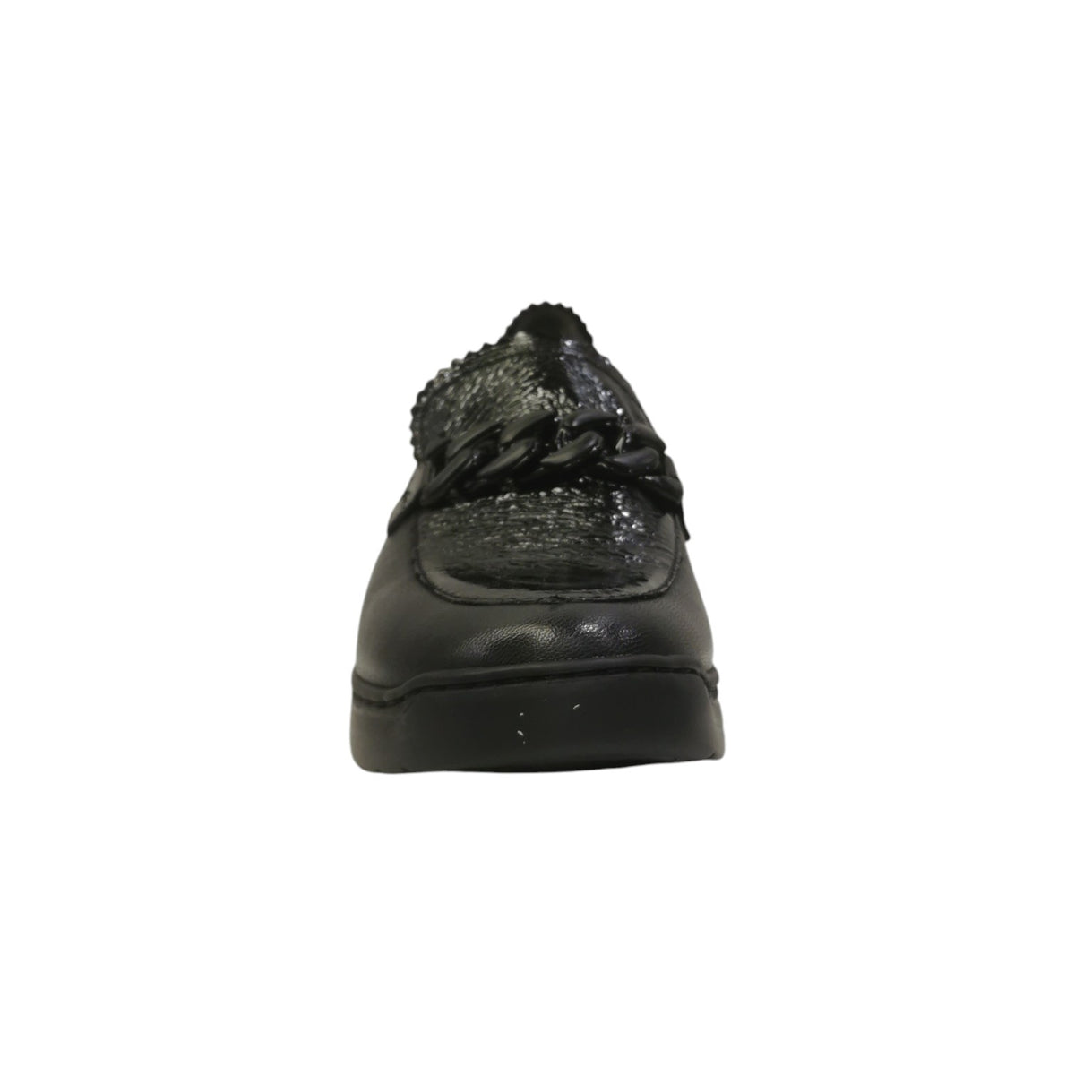 Melluso Mocassino Donna in Pelle e Vernice Nera con Catena Frontale