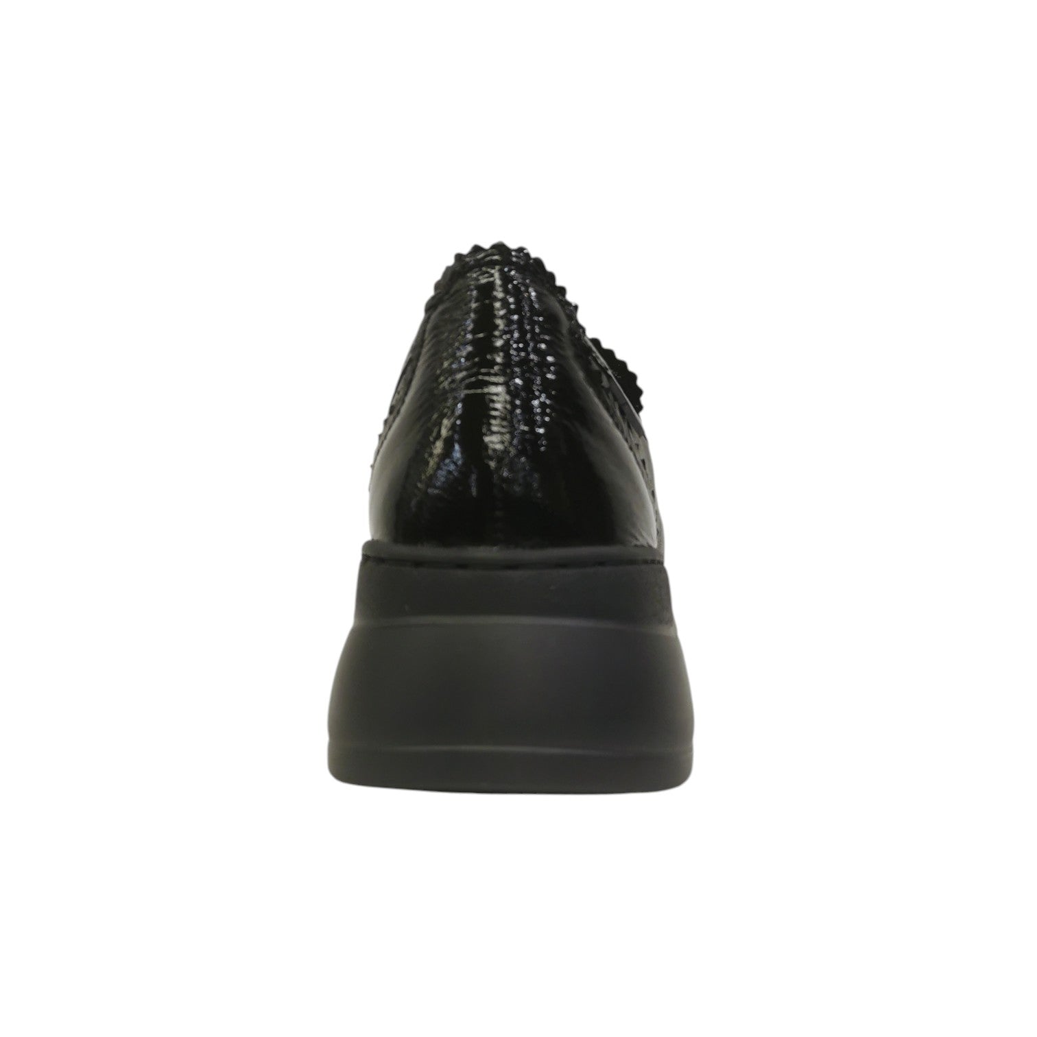Il Mocassino firmato Melluso, realizzato in pelle qui proposto nella variante nera è caratterizzato da zeppa di 6cm. Presenta un plantare foderato in pelle estraibile per un maggior comfort e dei inserti in vernice che donano un tocco elegante in più.
