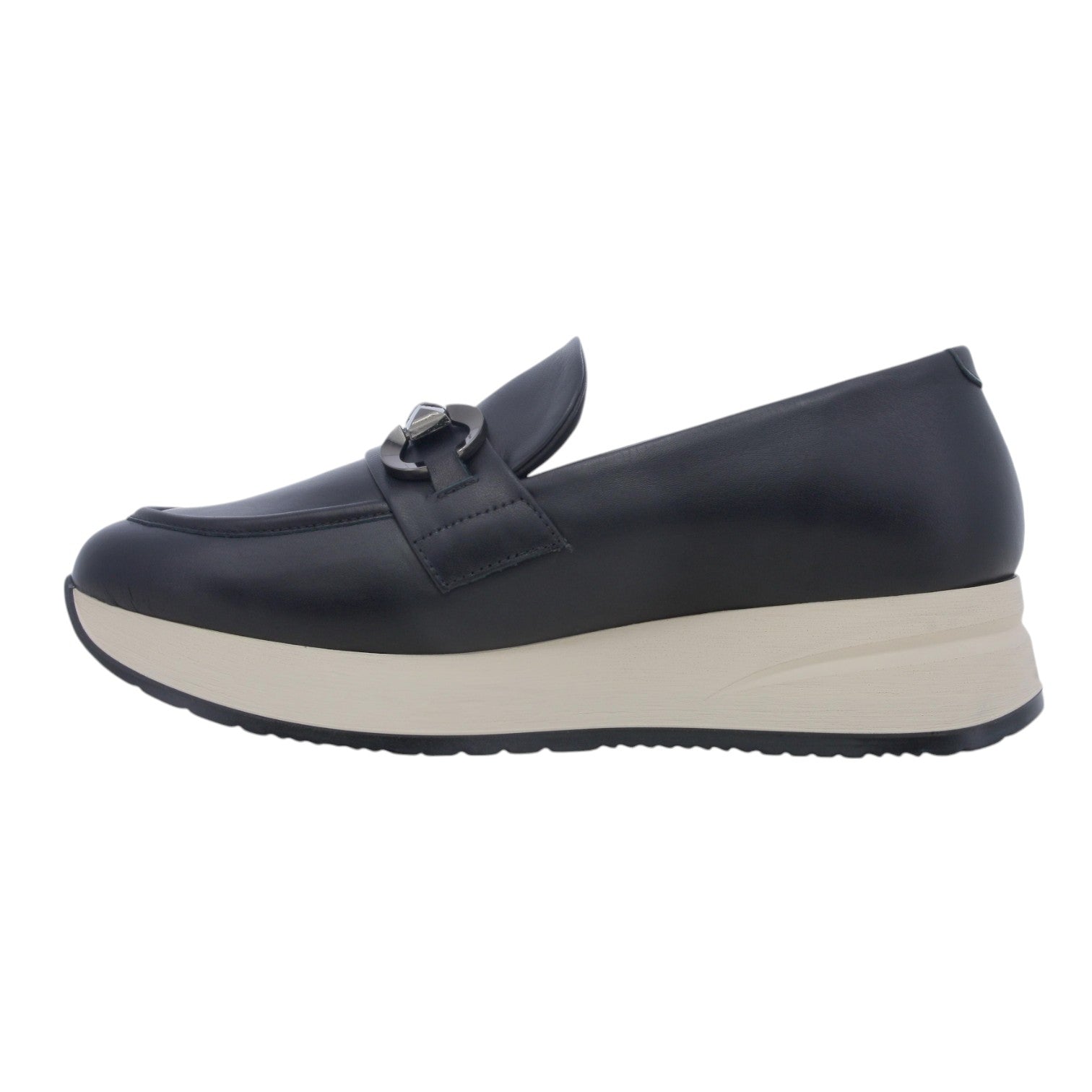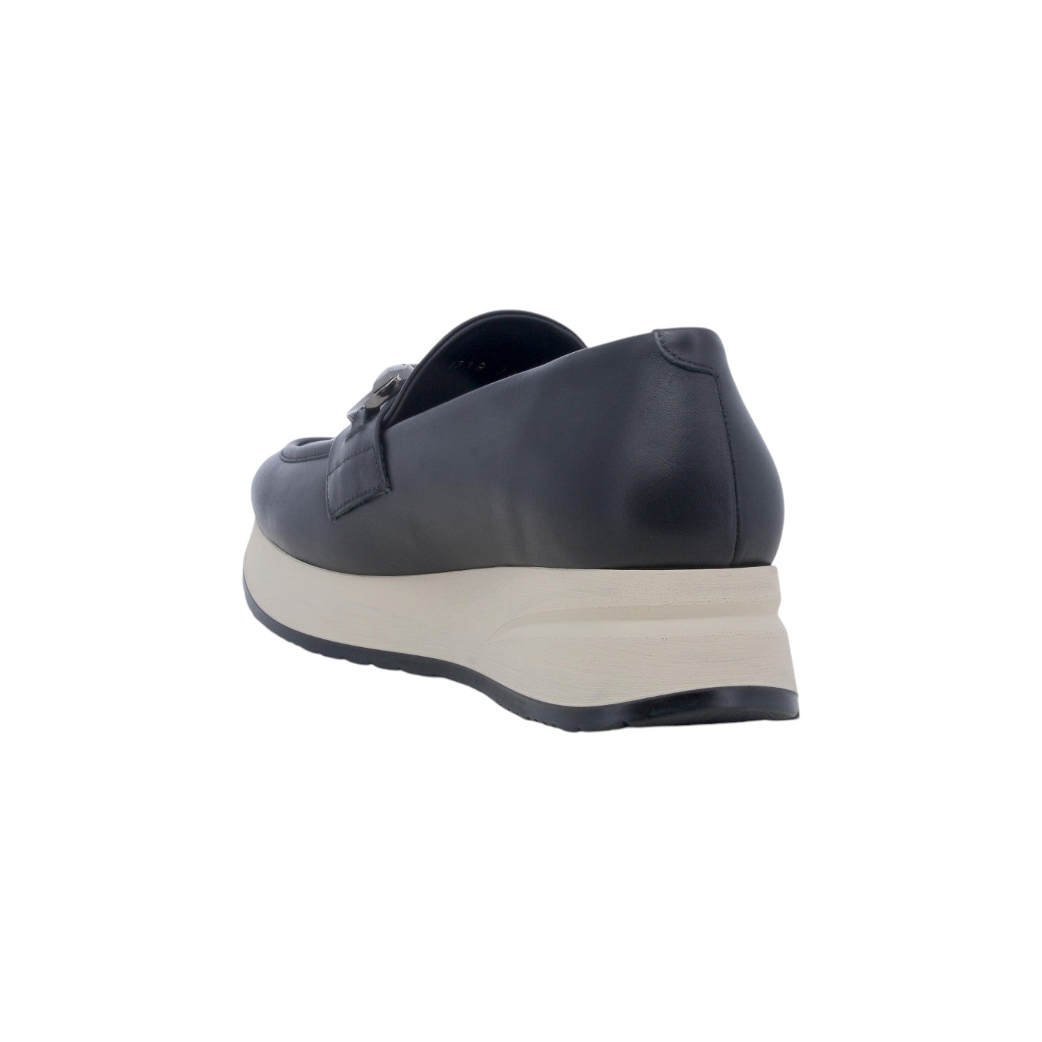 Melluso Mocassino Donna in Pelle Nera con Morsetto e Zeppa Bianca 42