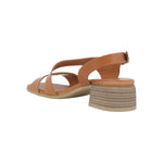 Il Sandalo firmato Melluso, realizzato in morbida pelle è caratterizzato da sottopiede interno realizzato in memory foam per offrire una comoda calzata e da fasce lungo il collo del piede color cuoio. Presenta un comodo tacco largo di 4cm effetto legno.