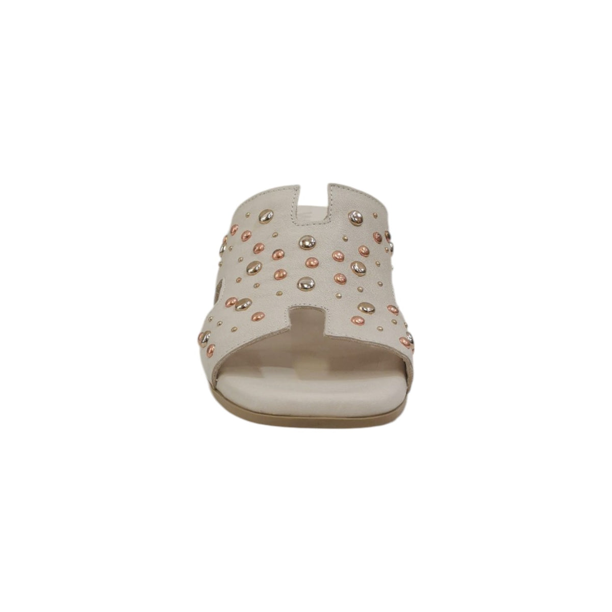 Melluso Scalzato Donna in Pelle Crema con Borchie e Tacco Basso 45mm