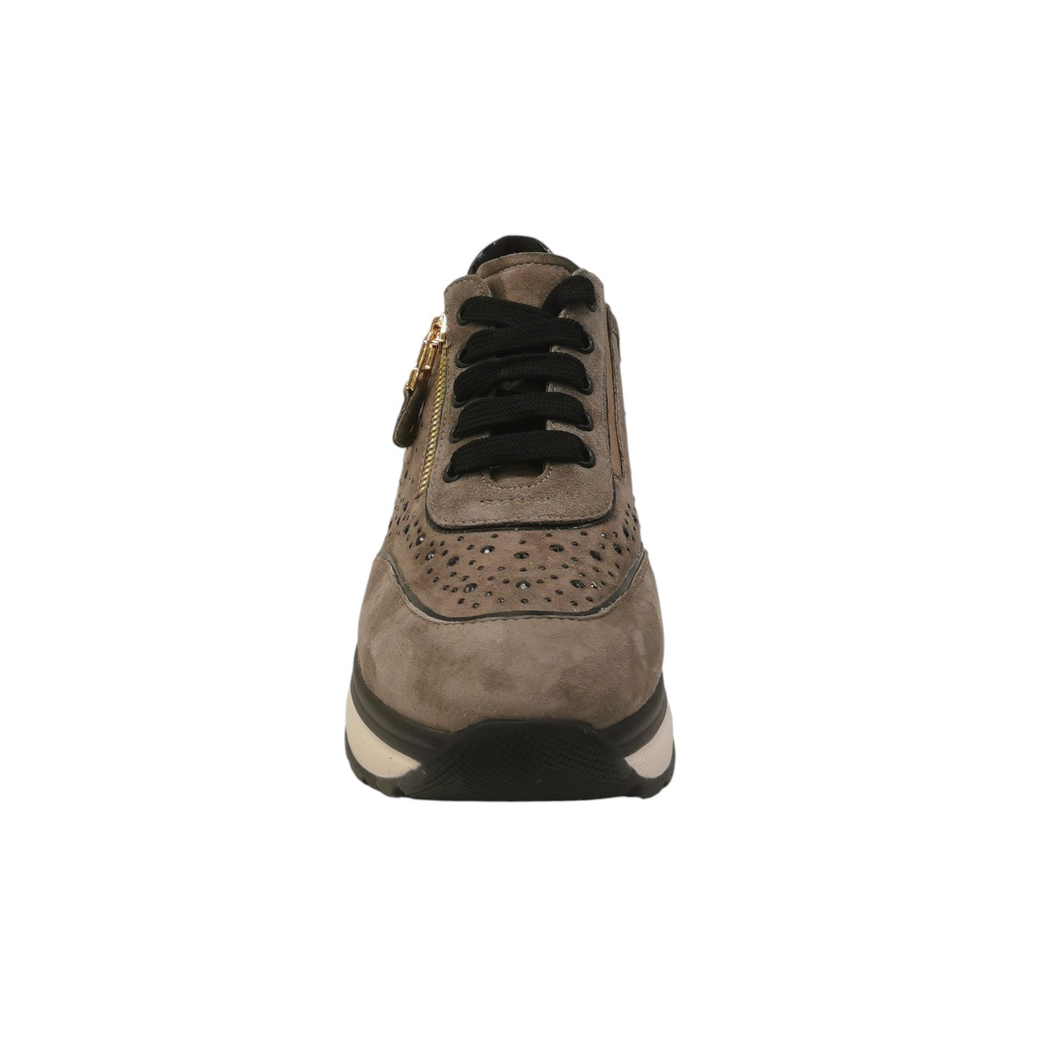 Melluso Sneakers Donna in Camoscio Grigio con Strass Neri e Zip
