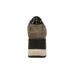 La Sneakers firmata Melluso, realizzata in camoscio qui proposto nella variante grigia è caratterizzata da zeppa di 67cm con rialzo interno. Presenta un plantare foderato in pelle estraibile per un maggior comfort e chiusura con lacci e zip.