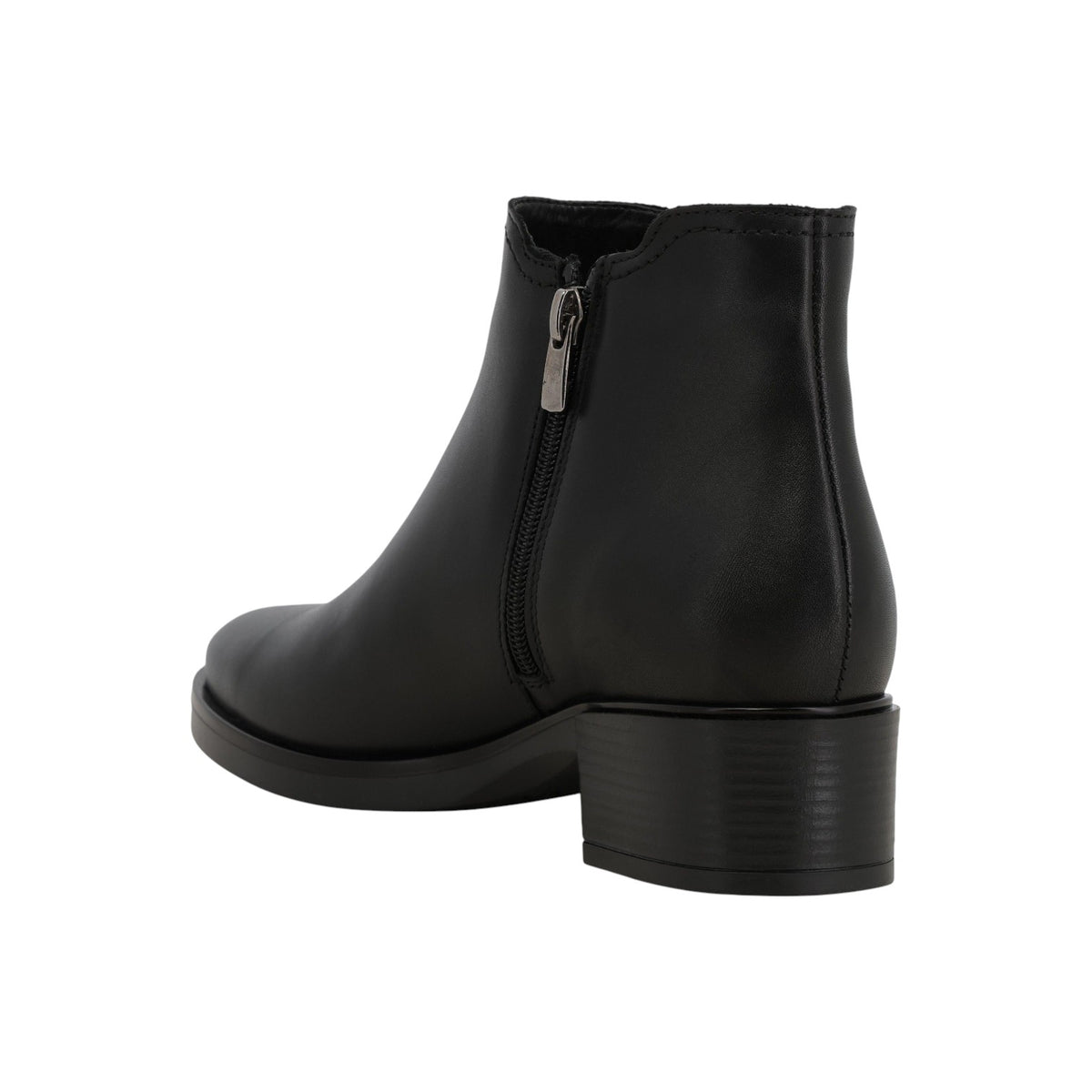 Lo Stivaletto firmato Melluso, realizzato in pelle qui proposto nella variante nera è caratterizzato da tacco di 4cm e da elastico laterale a V in tessuto, facile da indossare grazie alla cerniera laterale. Presenta un plantare foderato in pelle per un maggior comfort.
