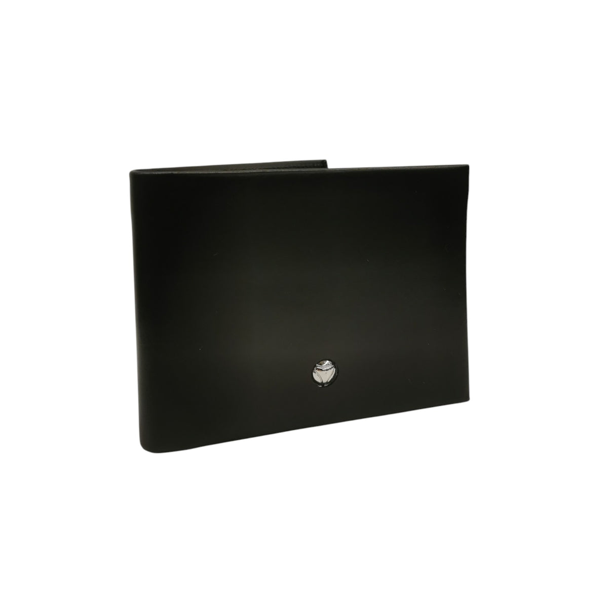 Il Portafoglio firmato Momo Design, realizzato in pelle liscia color nero con logo circolare in metallo presenta un doppio scomparto interno per banconote e slots portatessere.