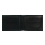 Il Portafoglio firmato Momo Design, realizzato in pelle linea Nappa color nero con logo circolare in metallo presenta un doppio scomparto interno per banconote e documenti porta monete, 4 slot per carte di credito, 3 scomparti porta documenti.