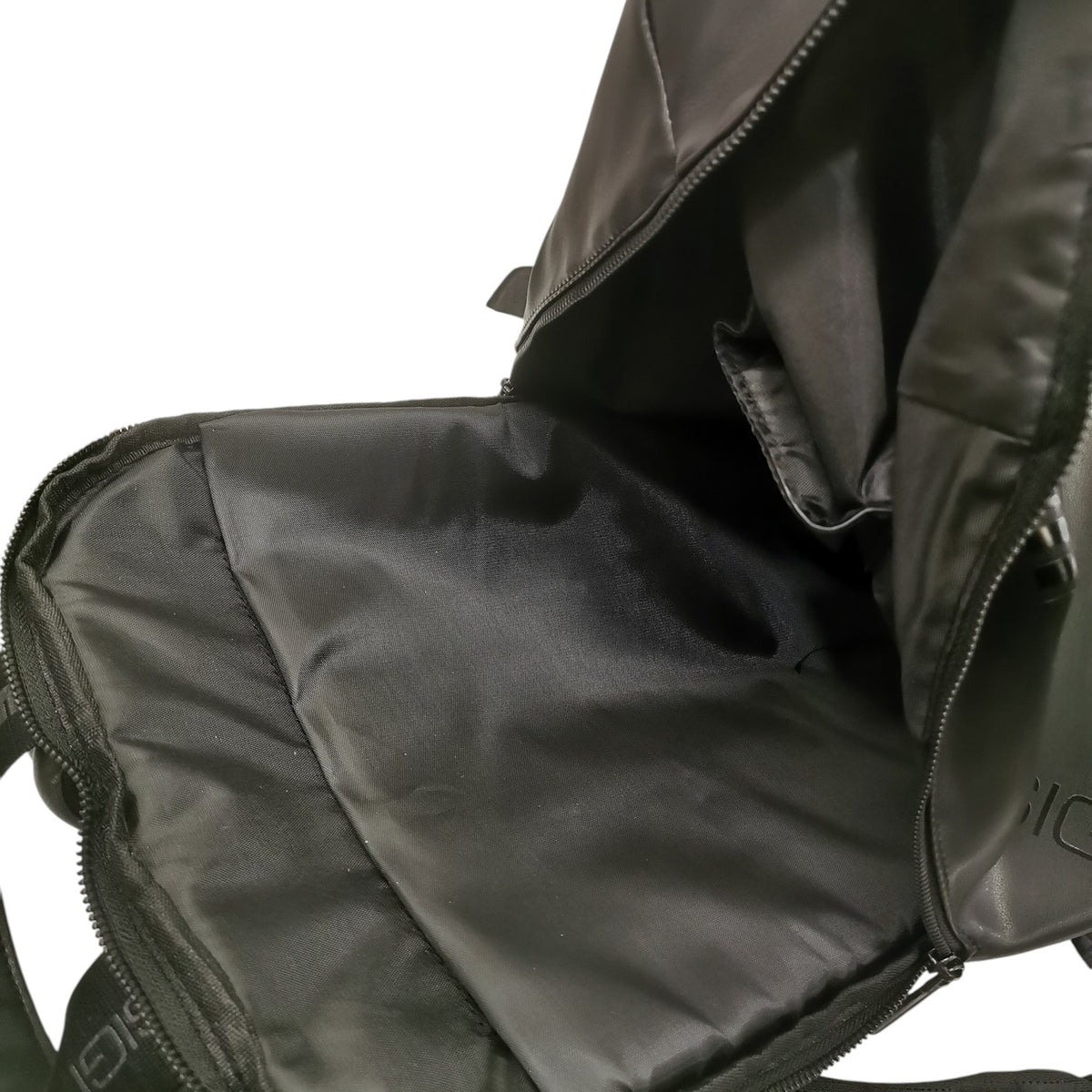 Lo Zaino firmato Momo Design, realizzato in ecopelle con adatto a contenere gli oggetti tecnologici di uso quotidiano in viaggio. È dotato di due scomparti, uno per il laptop e l'altro per il tablet, e di tasche interne con cerniera.