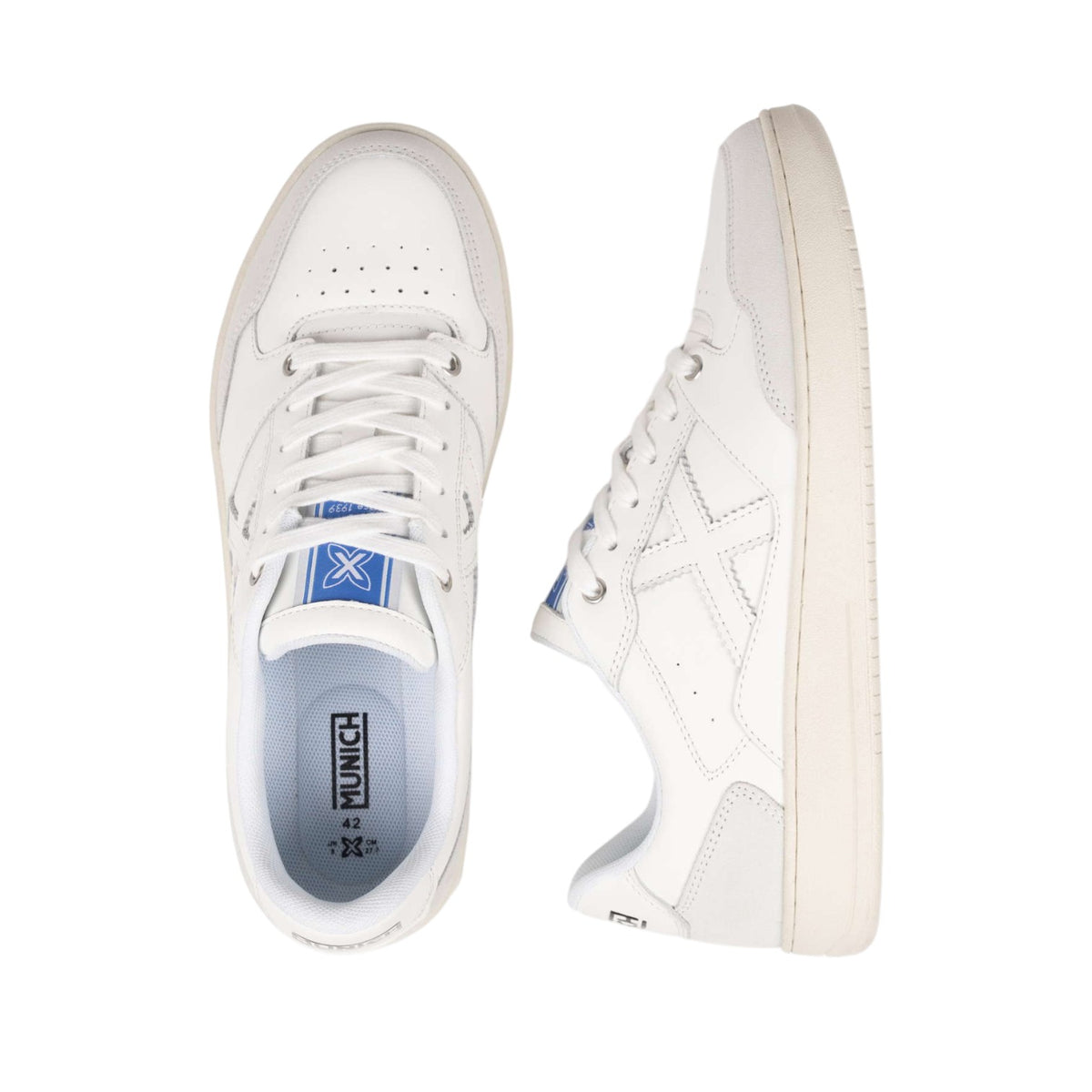 Munich Legit Man Sneakers Uomo in Pelle e Camoscio Bianca con Dettaglio Azzurro