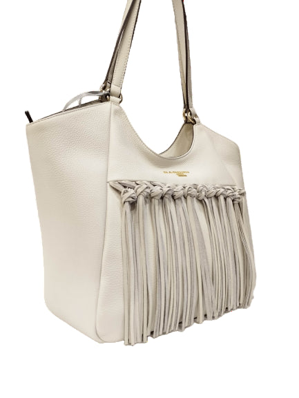 Nannini Firenze Borsa a Mano Donna in Pelle Bianca con Frange